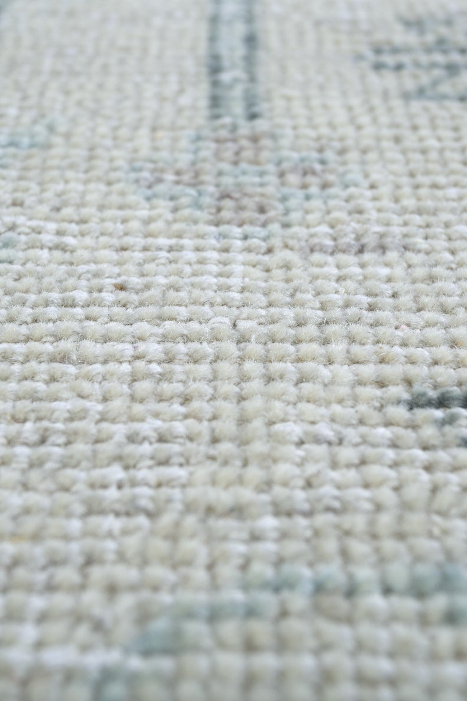 A blend of Ghazni and South African wool forms the textured pile of the rug, set upon a double-wefted cotton foundation. The foundation consists of a thick bottom weft and a finer top weft, creating a ribbed texture reminiscent of antique rugs. Drawing inspiration from antique Persian and Khotanese carpets, the design of the rug incorporates traditional and modern elements, resulting in a harmonious blend of classic motifs and contemporary colorations.