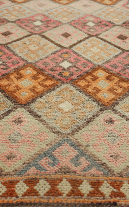Vintage Vintage Turkish Village Tribal Turkish Herki 3' 2" X 13' 0" Orange Rug