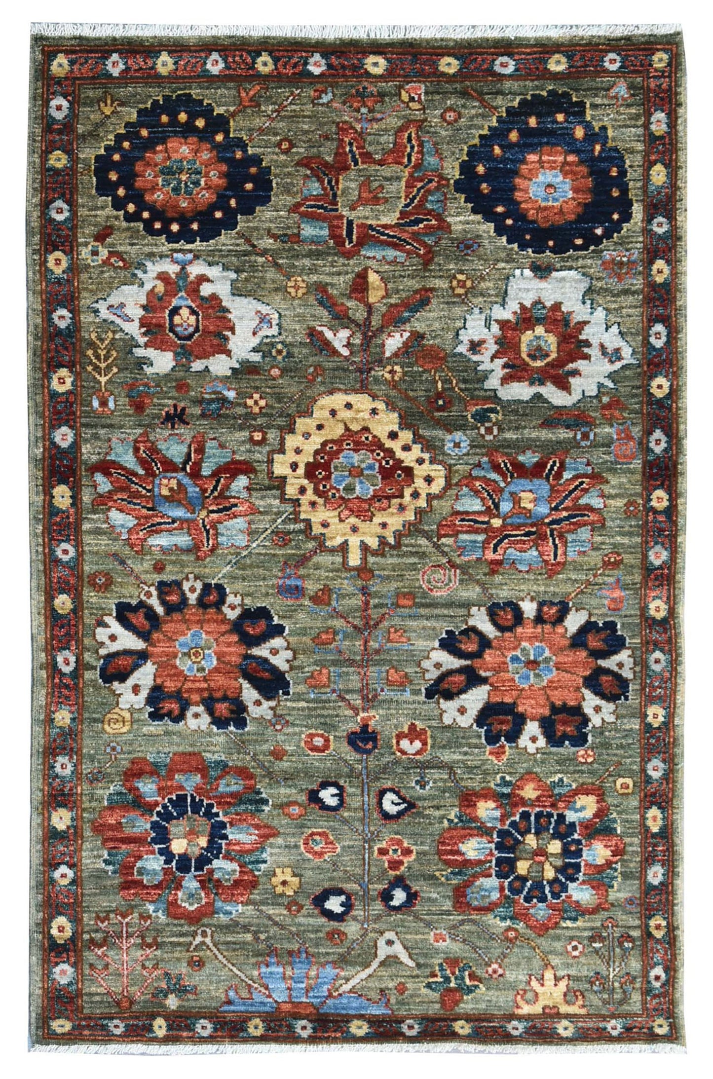 New Nomadic Persian & Turkish Tribal Afghani Sauj Balugh 3' 3" X 5' 0" Green Rug