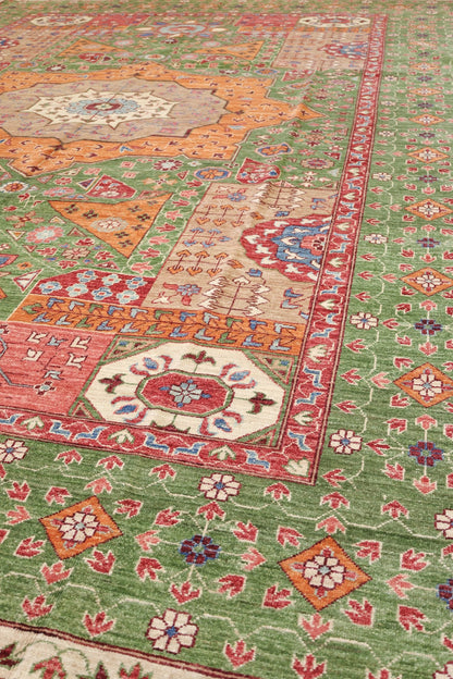 New Nomadic Persian & Turkish Tribal Afghani Mamluk 9' 2" X 12' 2" Green Rug