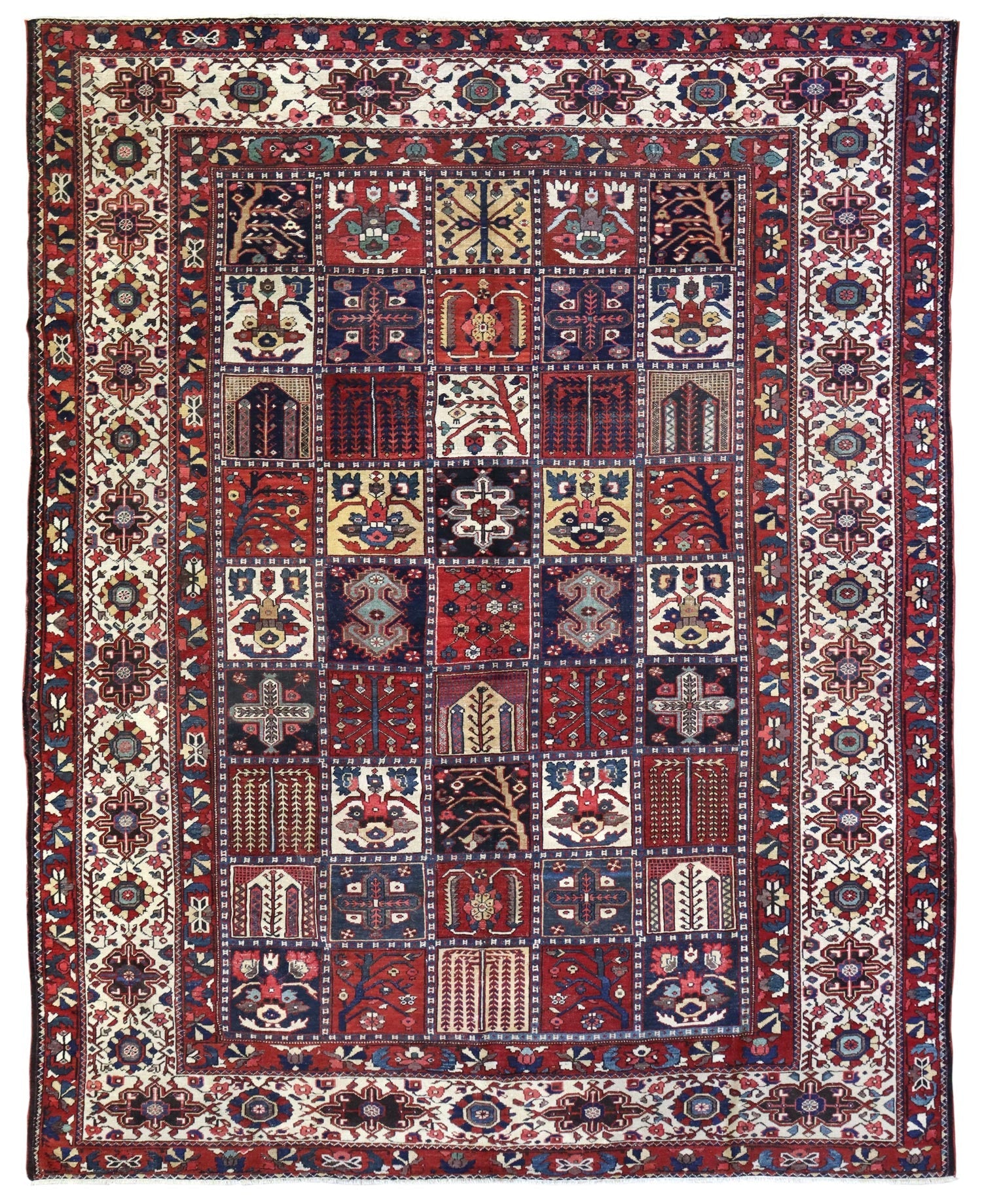 Show off your exquisite taste with our beautiful Antique Bakhtiari Handwoven Tribal Rug (J65219). It’s a prime example of a tribal Nomadic Persian & Turkish done right and will add a unique, polished look to your space. Crafted mainly in ivory and rust, the Bakhtiari design really pops. The wool pile surface is resilient yet comfortable and the cotton foundation provides a sturdy base. This 10' 3" X 13' 5" handwoven rug is of antique construction (circa 1925) and Persian origin. All in all, you’re going to love this piece and it’s going to be the perfect addition to your home. Make it happen today — with your own Antique Bakhtiari Handwoven Tribal Rug.