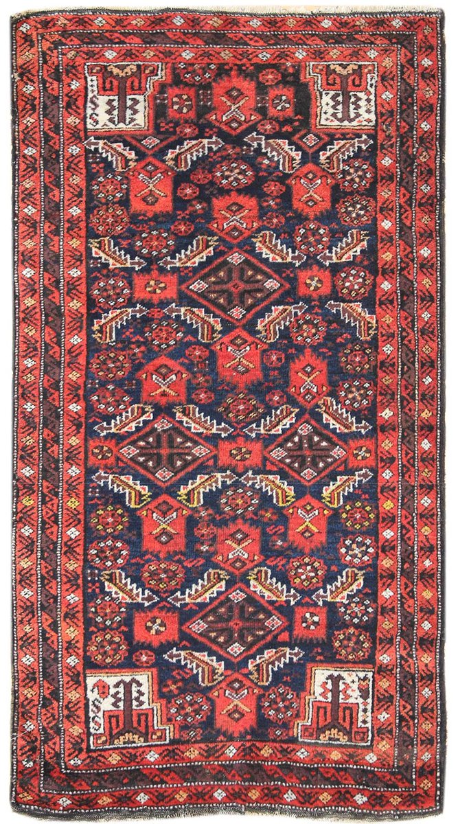 Elevate your room’s style with our Antique Baluchi Handwoven Tribal Rug (JF6056). The tribal Turkmen style, with its Baluchi motif, is definitely a stunner that you’ll be proud to show off in your home. Its distinctive blue, navy and brick palette will add charm, elegance, and that little bit of that ever-elusive je ne sais quoi. Plus, the wool pile on a cotton foundation used in this 3' 0" X 5' 7" rug accentuates its allure. But, this rug isn’t just worthy of gracing the pages of a design magazine. With its masterful Central Asian handwoven construction, this antique rug from around 1930 will be a prized possession for decades to come. Get your own show-stopping Antique Baluchi Handwoven Tribal Rug today!