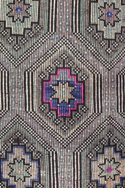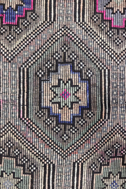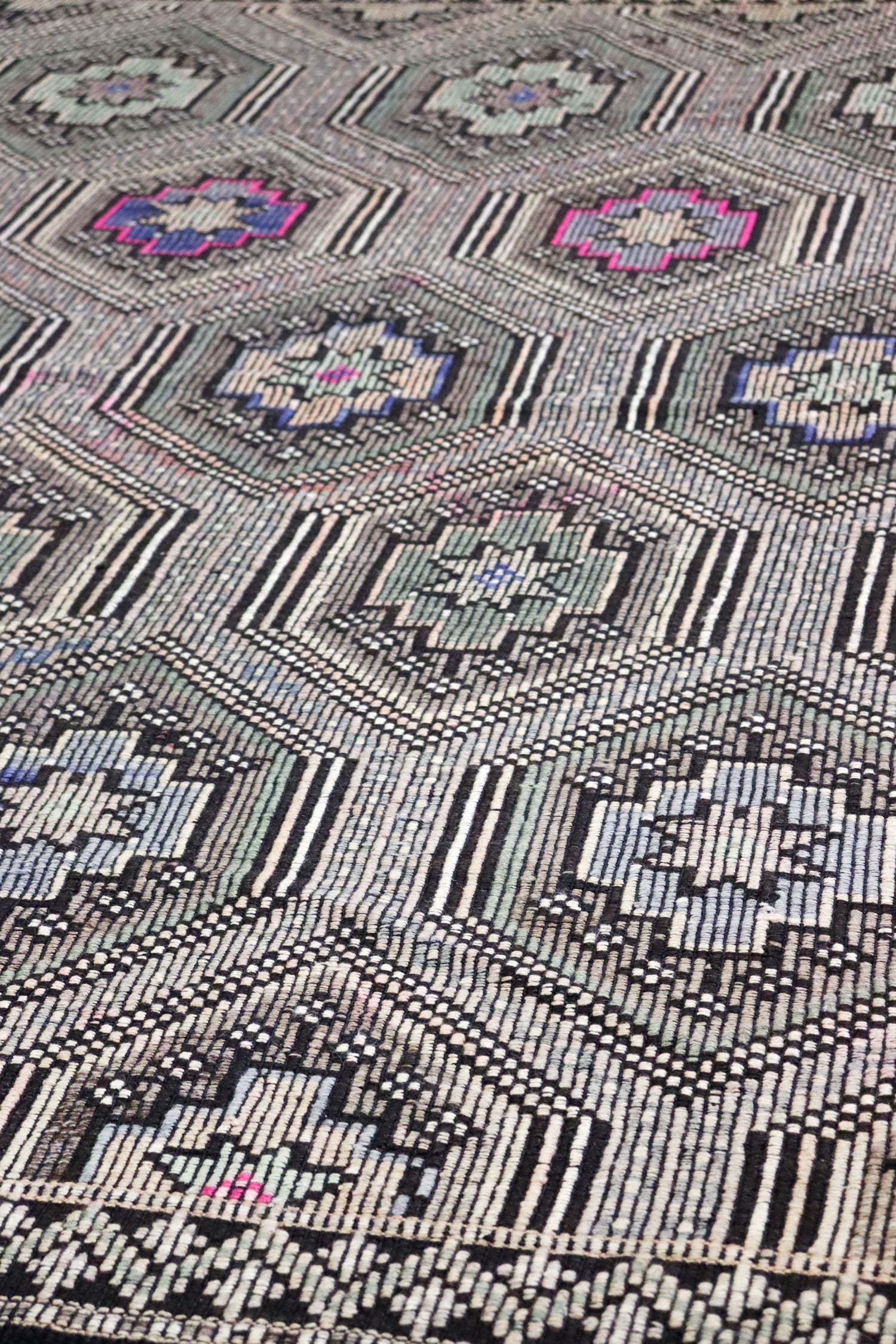 Show off your exquisite taste with our beautiful Vintage Jijim Handwoven Tribal Rug (J64714). It’s a prime example of a tribal Kilim done right and will add a unique, polished look to your space. Crafted mainly in grey and complemented with charcoal and sage, the Jijim design really pops. The wool flatweave surface is resilient yet comfortable and the wool foundation provides a sturdy base. This 6' 10" X 9' 9" handwoven rug is of vintage construction and Turkish origin. All in all, you’re going to love this piece and it’s going to be the perfect addition to your home. Make it happen today — with your own Vintage Jijim Handwoven Tribal Rug.
