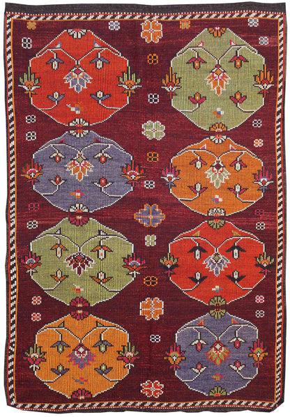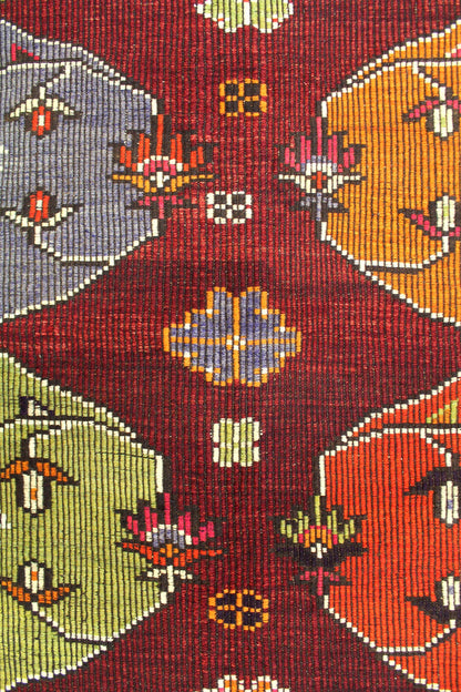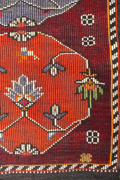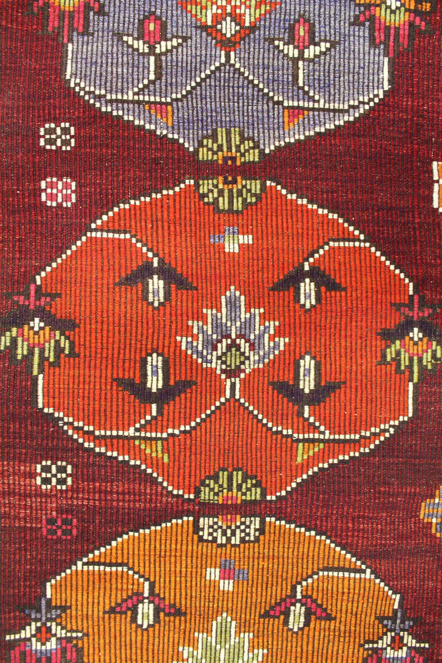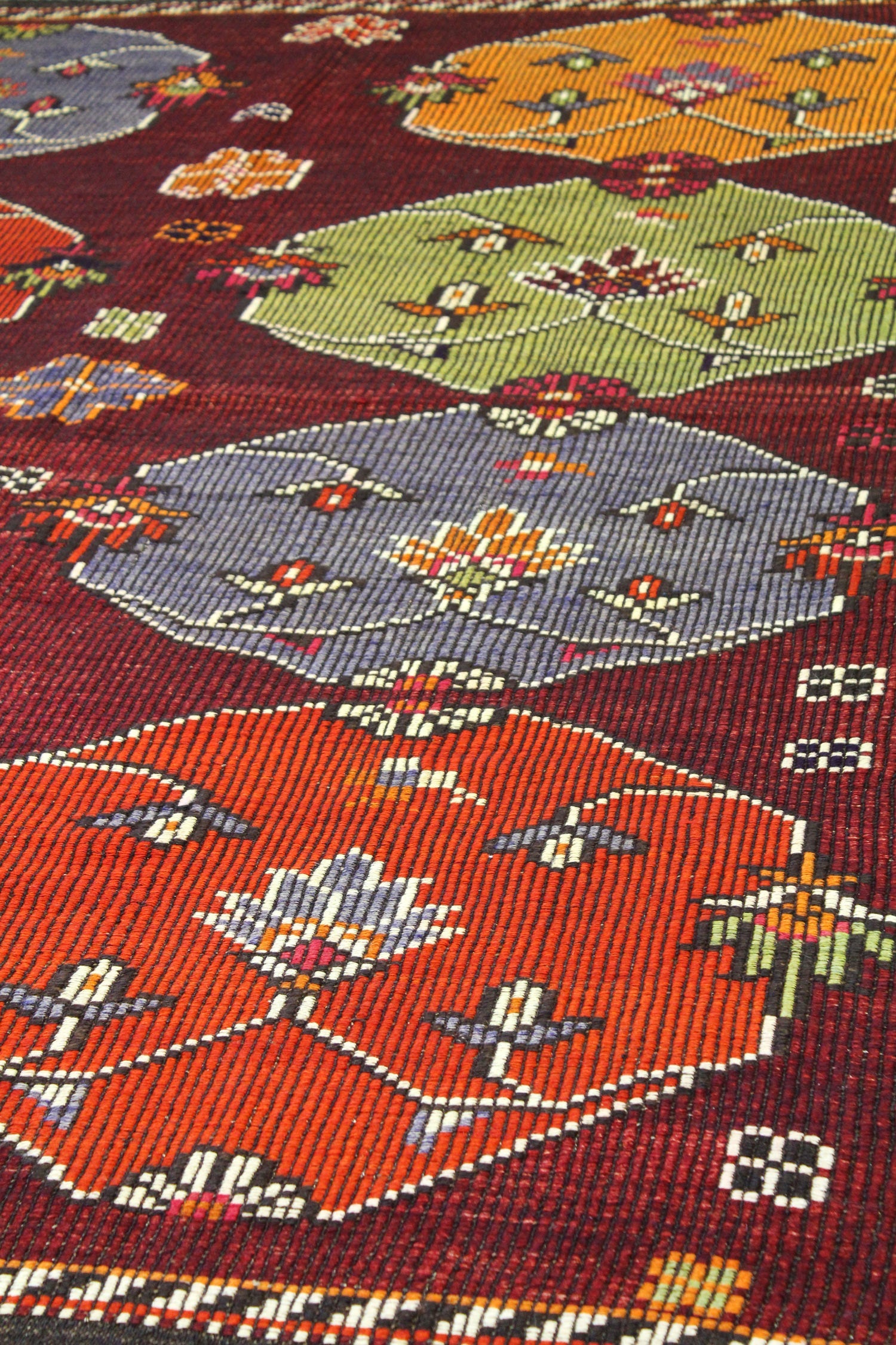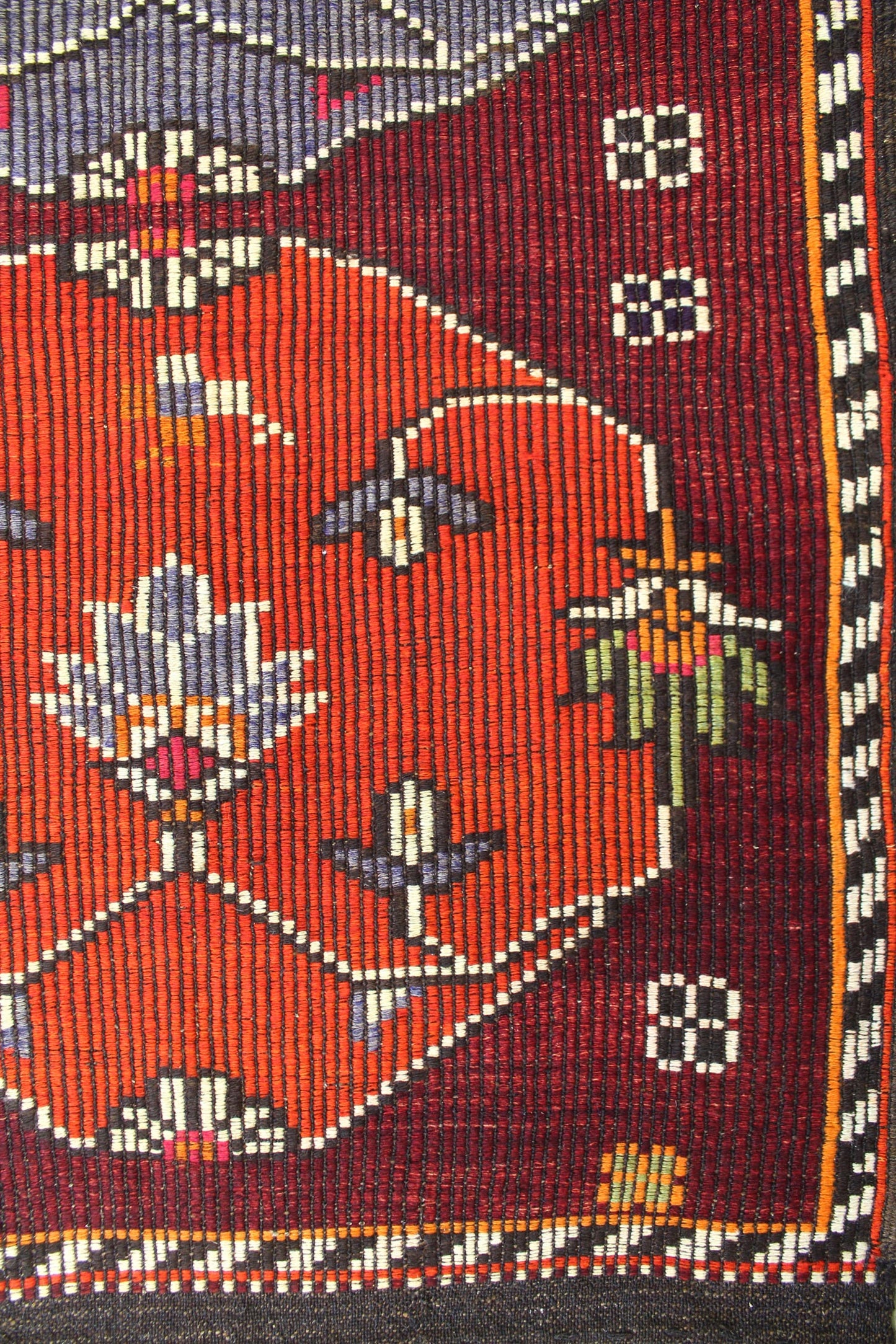 Show off your exquisite taste with our beautiful Vintage Jijim Handwoven Tribal Rug (J64768). It’s a prime example of a tribal Kilim done right and will add a unique, polished look to your space. Crafted mainly in red and complemented with maroon and tangerine, the Jijim design really pops. The wool flatweave surface is resilient yet comfortable and the wool foundation provides a sturdy base. This 6' 7" X 8' 11" handwoven rug is of vintage construction and Turkish origin. All in all, you’re going to love this piece and it’s going to be the perfect addition to your home. Make it happen today — with your own Vintage Jijim Handwoven Tribal Rug.