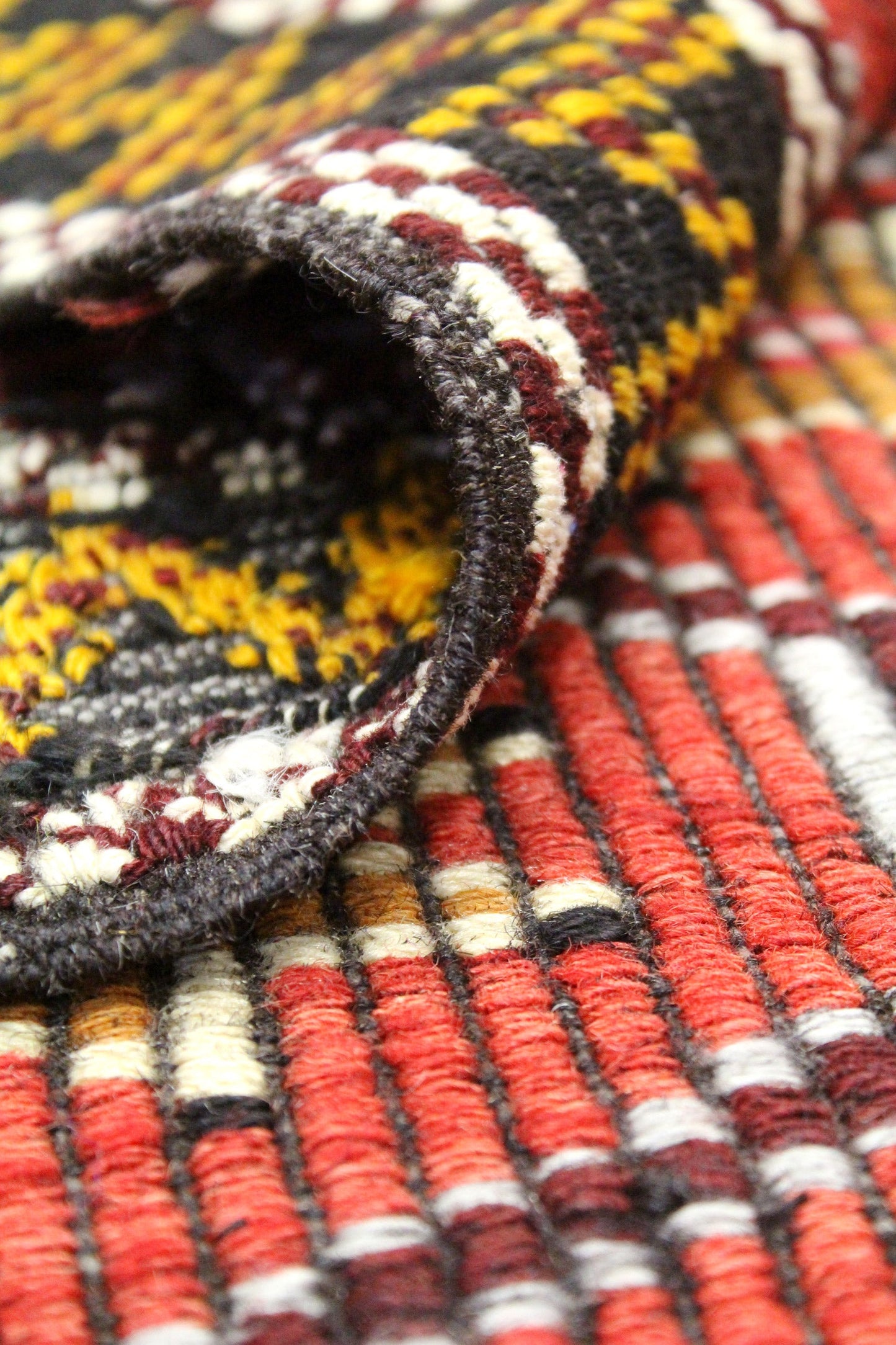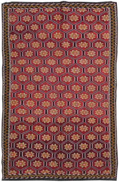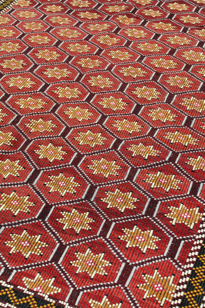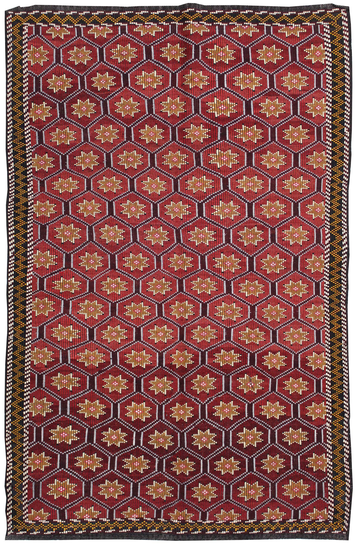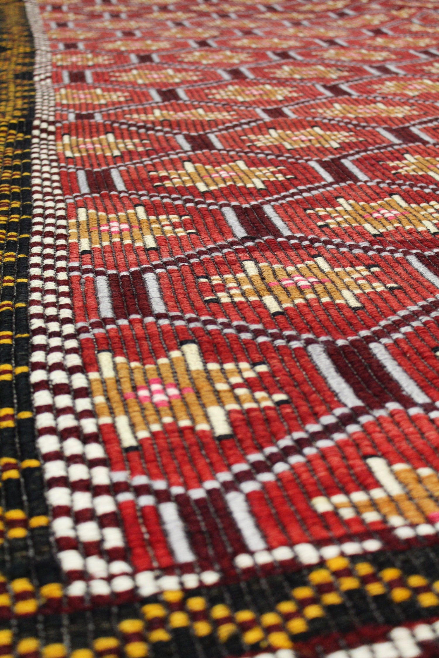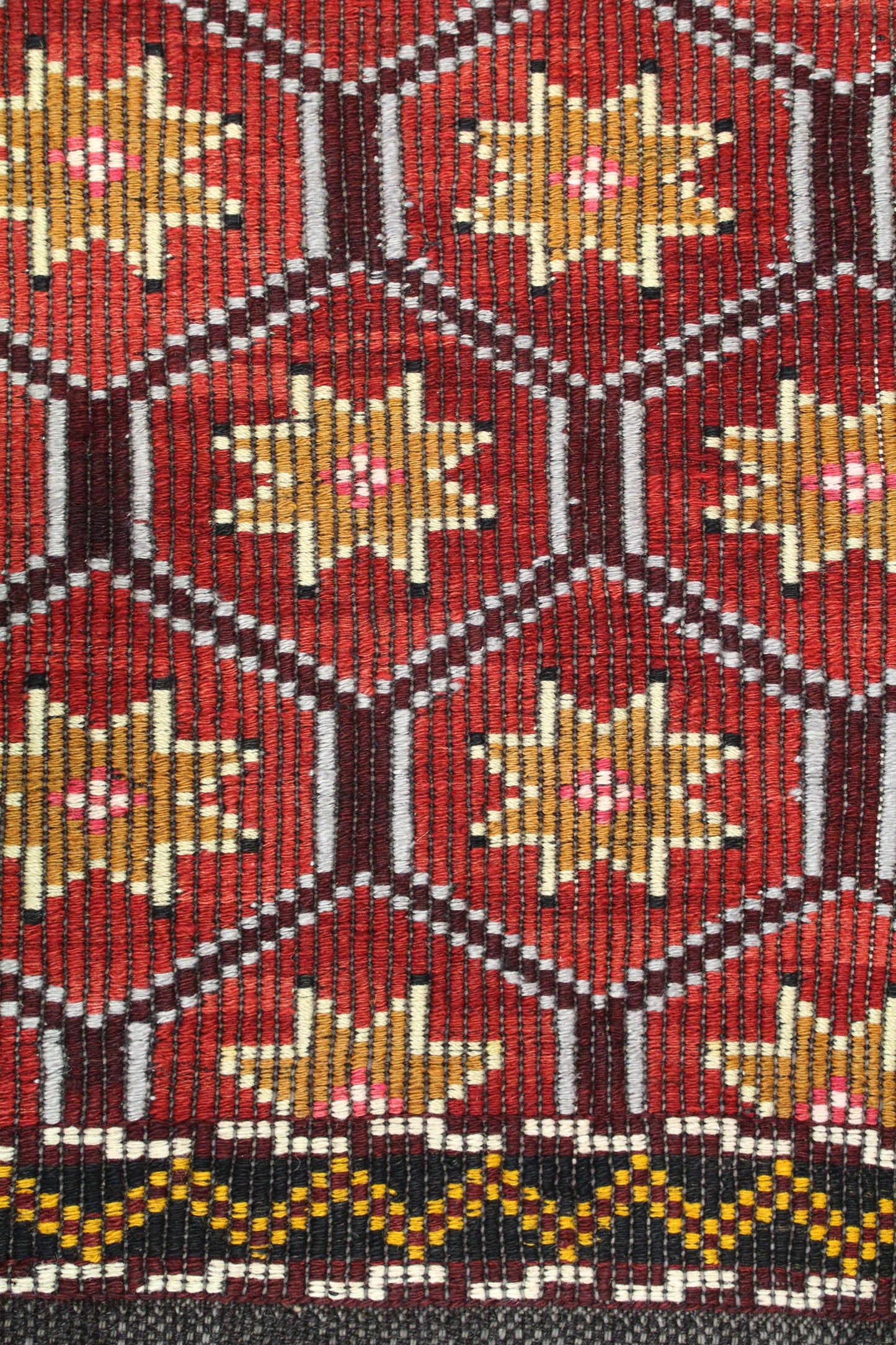 Show off your exquisite taste with our beautiful Vintage Jijim Handwoven Tribal Rug (J64778). It’s a prime example of a tribal Kilim done right and will add a unique, polished look to your space. Crafted mainly in red and complemented with brown and yellow, the Jijim design really pops. The wool flatweave surface is resilient yet comfortable and the wool foundation provides a sturdy base. This 6' 8" X 10' 4" handwoven rug is of vintage construction and Turkish origin. All in all, you’re going to love this piece and it’s going to be the perfect addition to your home. Make it happen today — with your own Vintage Jijim Handwoven Tribal Rug.