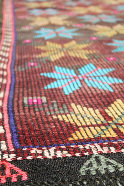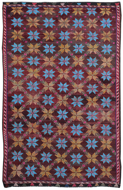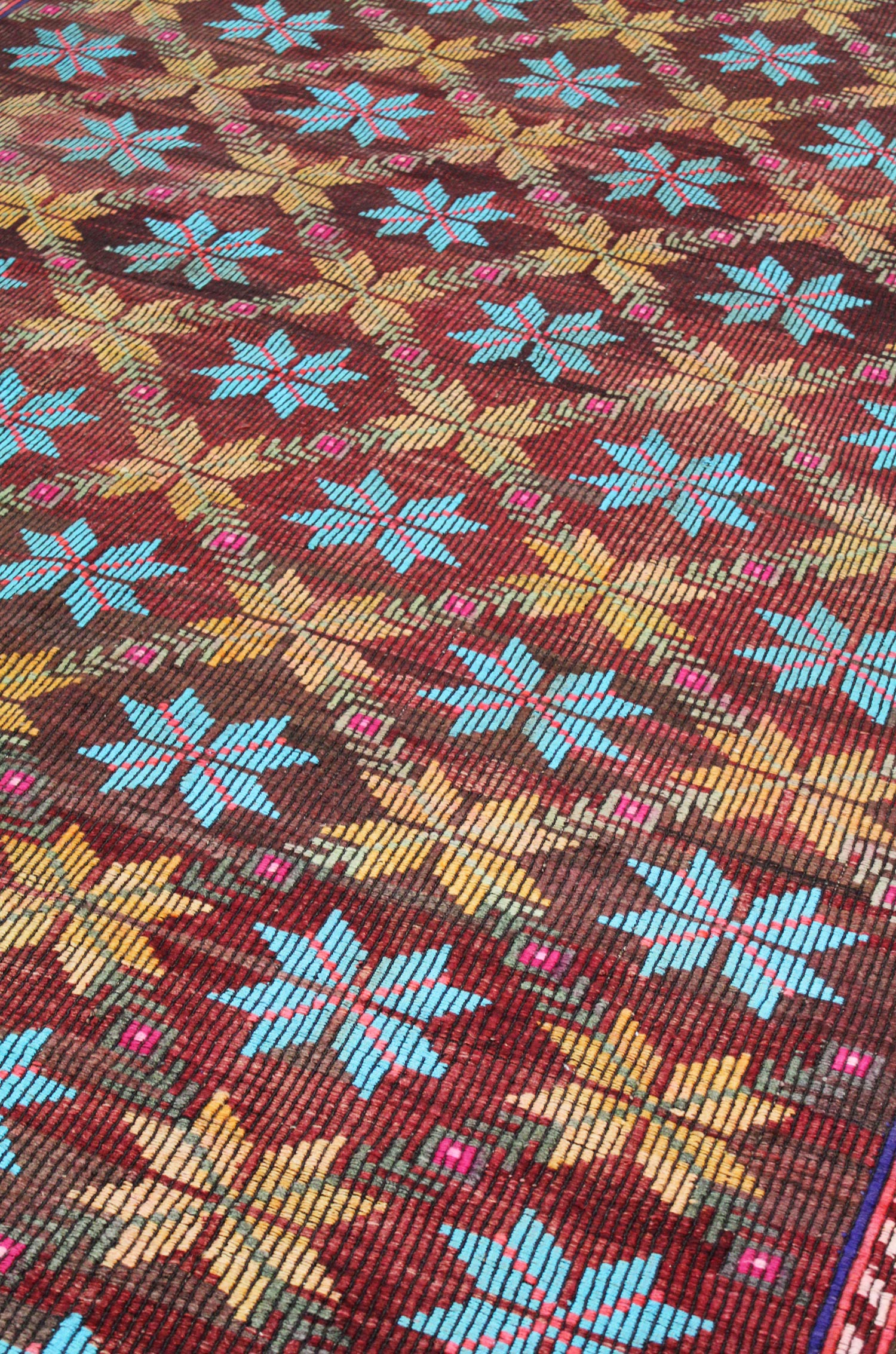 Show off your exquisite taste with our beautiful Vintage Jijim Handwoven Tribal Rug (J64780). It’s a prime example of a tribal Kilim done right and will add a unique, polished look to your space. Crafted mainly in brown and pink, the Jijim design really pops. The wool flatweave surface is resilient yet comfortable and the wool foundation provides a sturdy base. This 5' 6" X 9' 3" handwoven rug is of vintage construction and Turkish origin. All in all, you’re going to love this piece and it’s going to be the perfect addition to your home. Make it happen today — with your own Vintage Jijim Handwoven Tribal Rug.