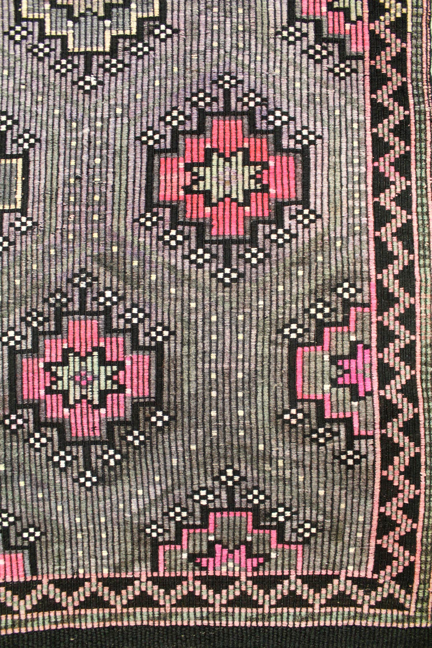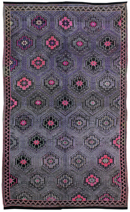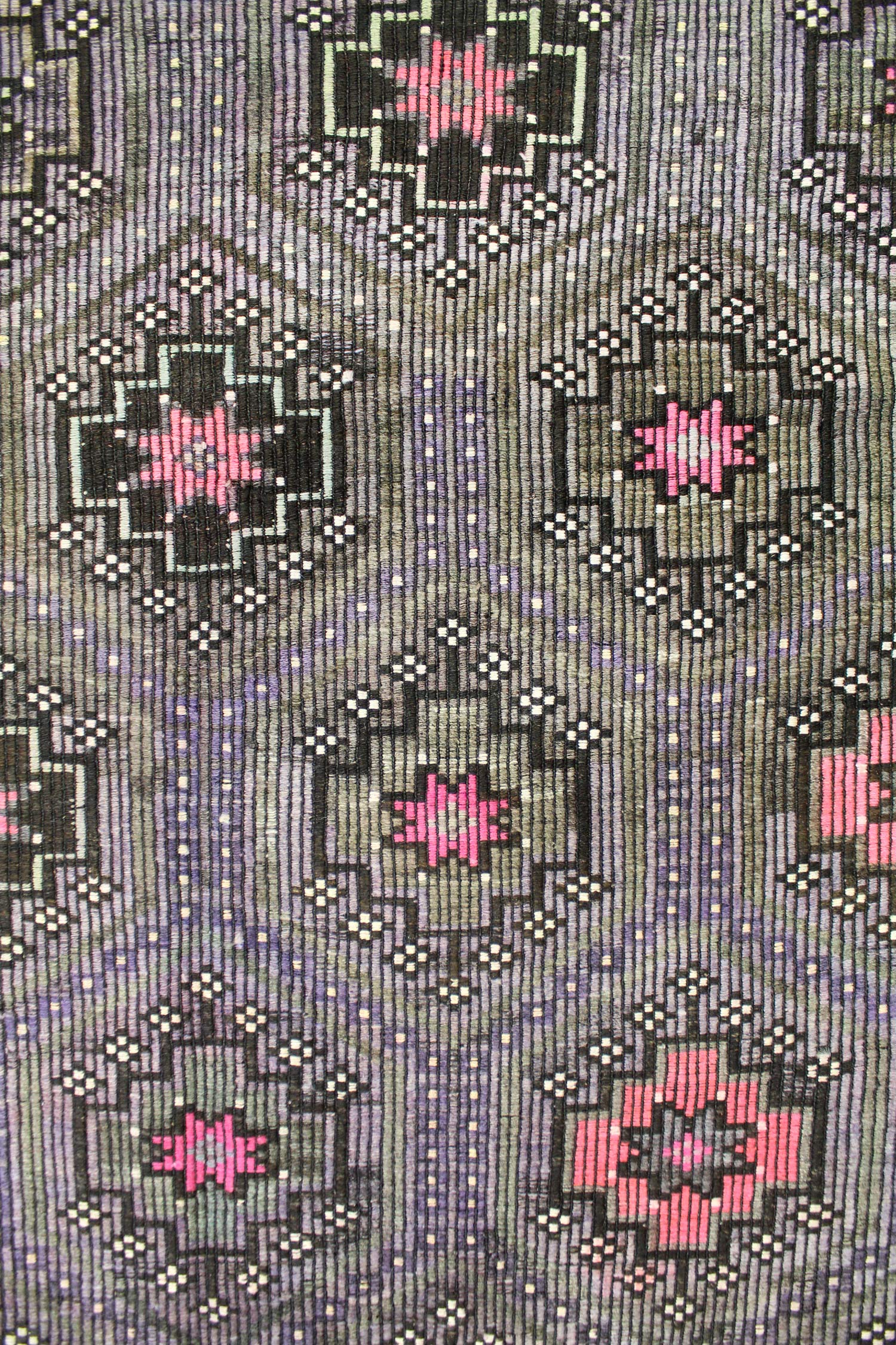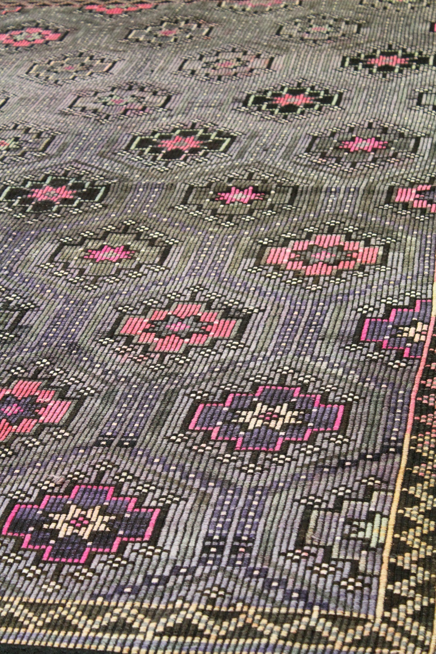 Show off your exquisite taste with our beautiful Vintage Jijim Handwoven Tribal Rug (J64795). It’s a prime example of a tribal Kilim done right and will add a unique, polished look to your space. Crafted mainly in purple and fuchsia, the Jijim design really pops. The wool flatweave surface is resilient yet comfortable and the wool foundation provides a sturdy base. This 6' 7" X 10' 10" handwoven rug is of vintage construction and Turkish origin. All in all, you’re going to love this piece and it’s going to be the perfect addition to your home. Make it happen today — with your own Vintage Jijim Handwoven Tribal Rug.