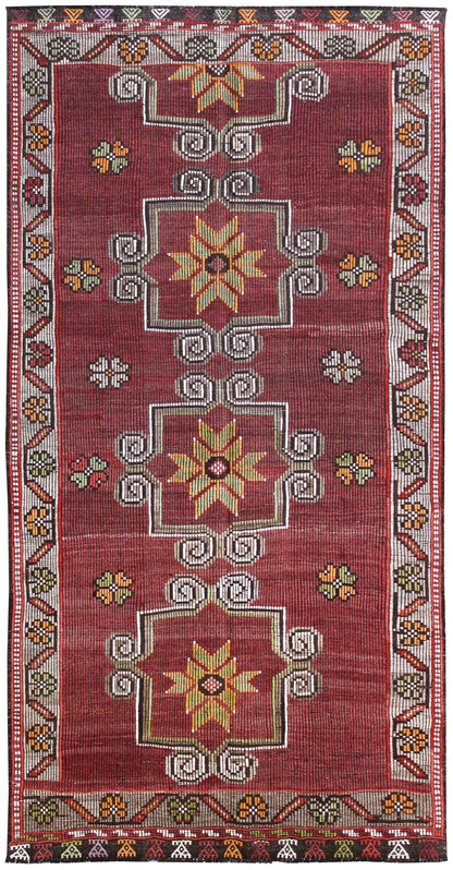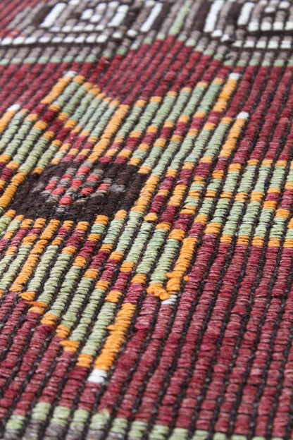 Show off your exquisite taste with our beautiful Vintage Jijim Handwoven Tribal Rug (J64803). It’s a prime example of a tribal Kilim done right and will add a unique, polished look to your space. Crafted mainly in red and complemented with raspberry and lime, the Jijim design really pops. The wool flatweave surface is resilient yet comfortable and the wool foundation provides a sturdy base. This 5' 5" X 10' 8" handwoven rug is of vintage construction and Turkish origin. All in all, you’re going to love this piece and it’s going to be the perfect addition to your home. Make it happen today — with your own Vintage Jijim Handwoven Tribal Rug.
