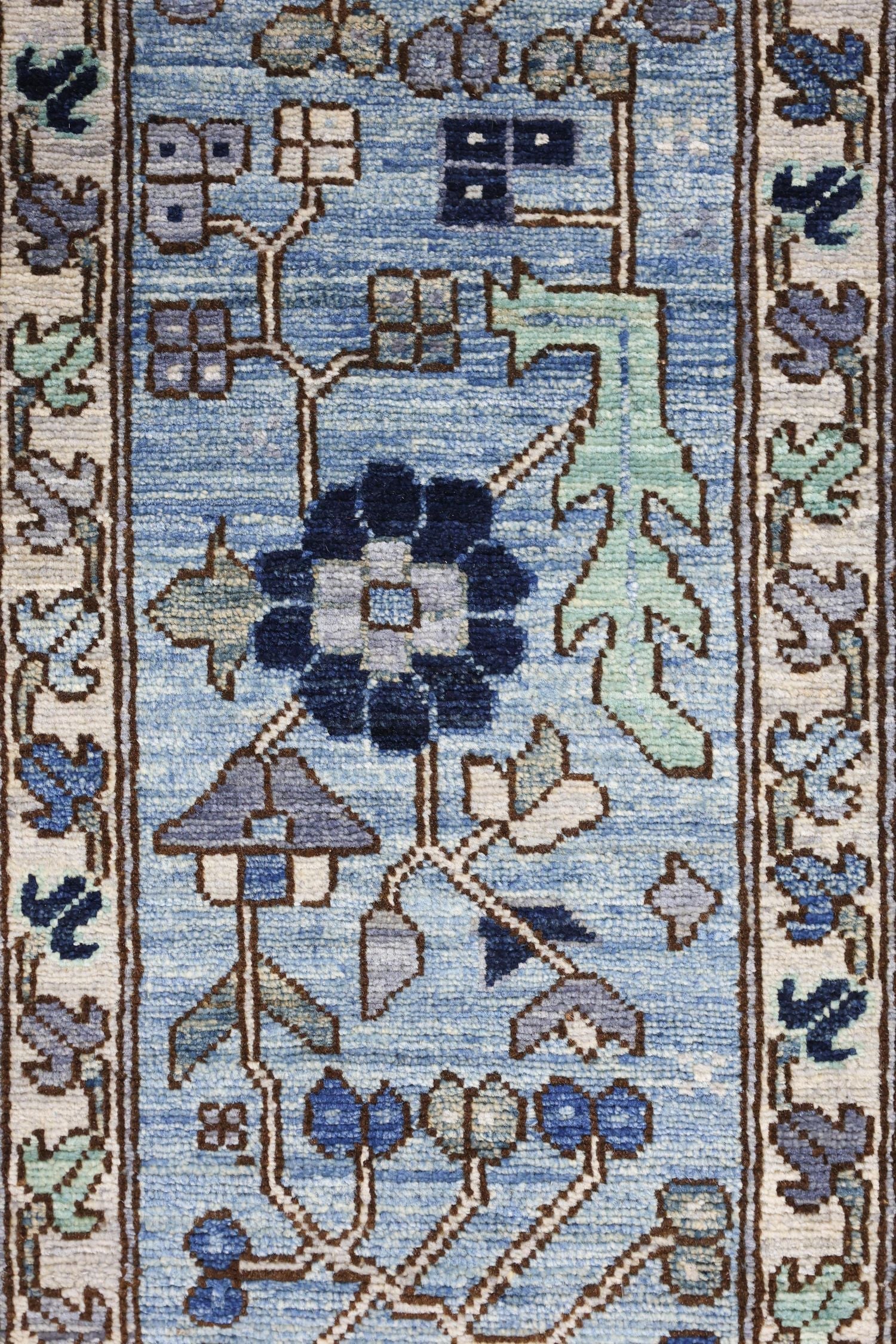 Handcrafted on traditional floor looms, this rug is woven in the weavers' own homes, creating a cottage industry production style. Utilizing the asymmetrical "Persian" knot type, the rug showcases the expertise and skill of the weavers. The pile is made of all wool, while the warp and weft consist of cotton.