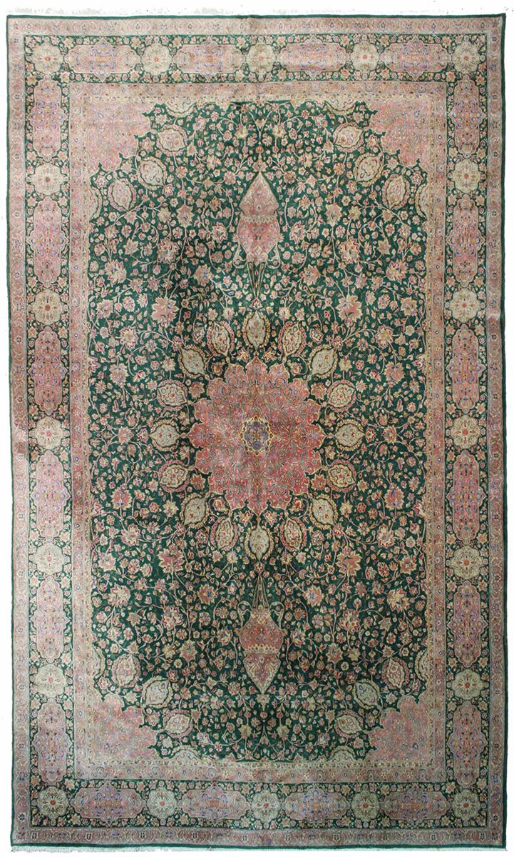Elevate your room’s style with our Antique Kerman Handwoven Closeout Rug (JF5749). The traditional Formal Classic Persian style, with its Kerman motif, is definitely a stunner that you’ll be proud to show off in your home. Its distinctive green and pink palette will add charm, elegance, and that little bit of that ever-elusive je ne sais quoi. Plus, the wool pile on a cotton foundation used in this 12' 1" X 19' 10" rug accentuates its allure. But, this rug isn’t just worthy of gracing the pages of a design magazine. With its masterful Persian handwoven construction, this antique rug from around 1945 will be a prized possession for decades to come. Get your own show-stopping Antique Kerman Handwoven Closeout Rug today!