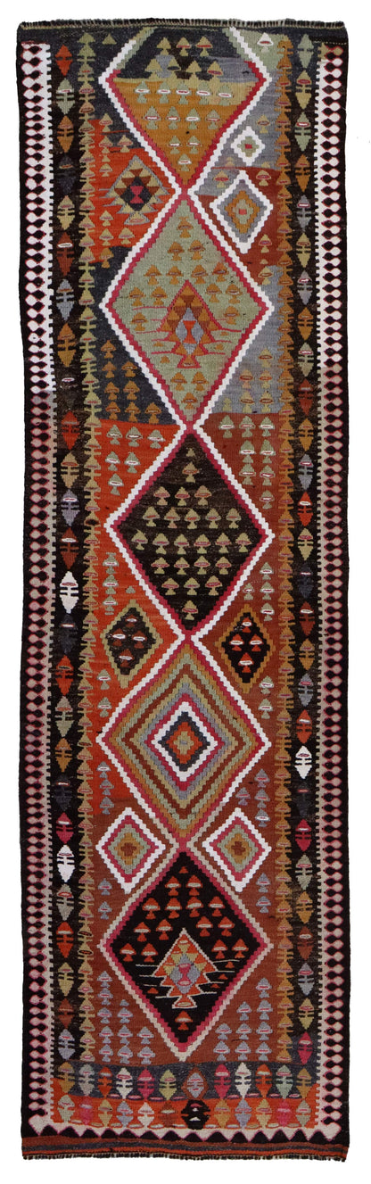 Change things up — transform your space with our amazing Vintage Herki Kilim Handwoven Tribal Rug (J66572). This vintage 3' 0" X 10' 6" rug is in the tribal Vintage Turkish Village style and features a stunning Herki Kilim design that you’ll absolutely love. This rug is primarily red on rust with charcoal accents. You’ll also appreciate the wool flatweave on a wool foundation, which feels great underfoot! As with other handwoven Turkish rugs, this one’s made to last. You’ll be enjoying the elements of interest and sophistication it adds to your home for years. Don’t delay — refresh your room today with your own Vintage Herki Kilim Handwoven Tribal Rug.
