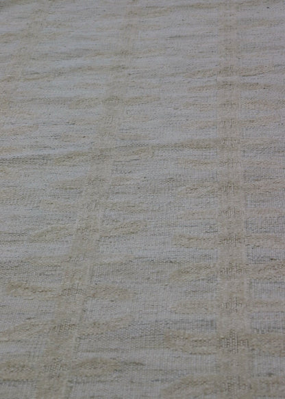 New Modern Flatweave Contemporary Indian Scandinavian 3' 4" X 9' 4" Ivory Rug