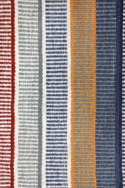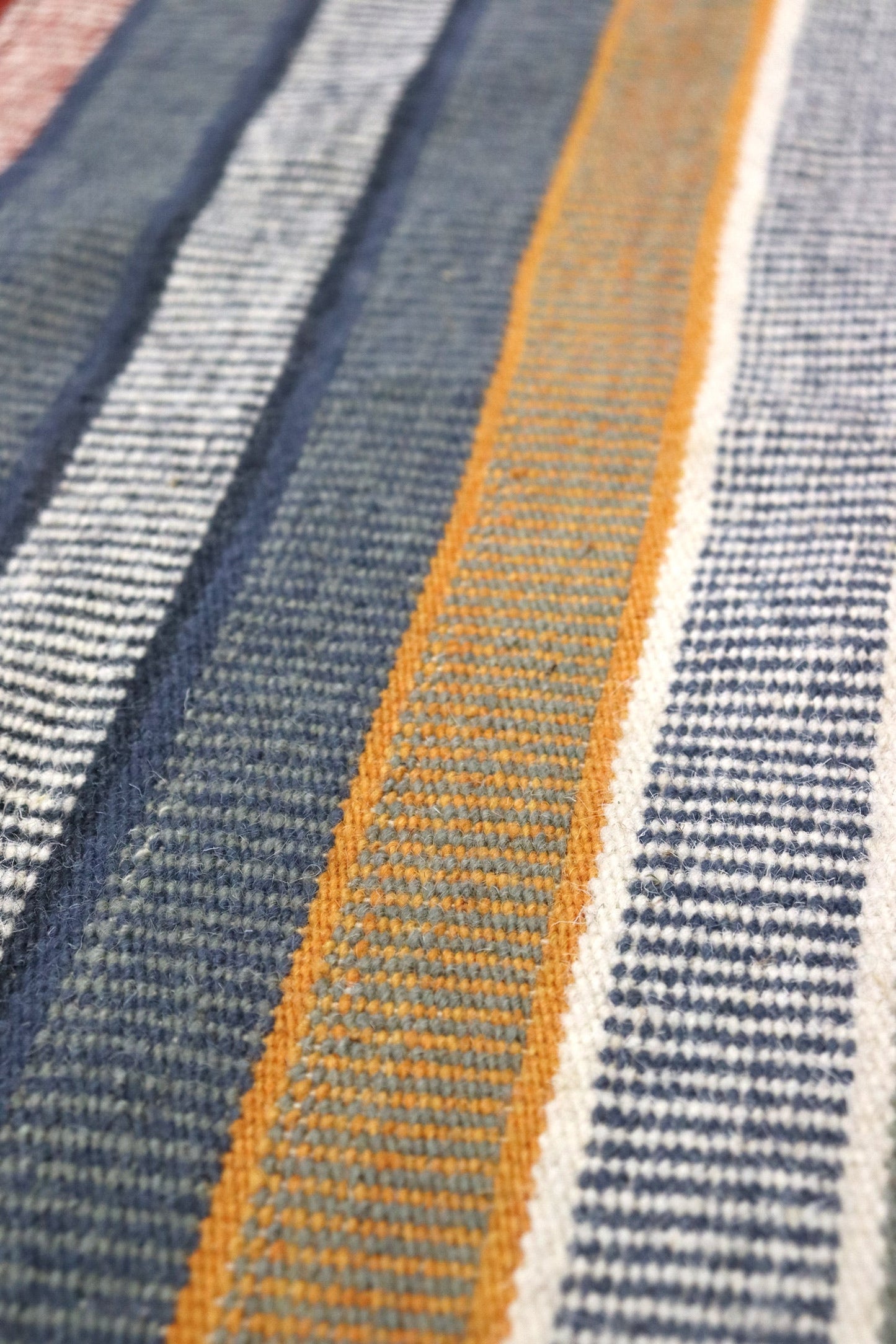 Change things up — transform your space with our amazing Stripes Handwoven Contemporary Rug (J66437). This new 4' 6" X 9' 0" rug is in the contemporary Modern Flatweave style and features a stunning Stripes design that you’ll absolutely love. This rug is primarily blue on orange with denim accents. You’ll also appreciate the wool flatweave on a cotton foundation, which feels great underfoot! As with other handwoven Indian rugs, this one’s made to last. You’ll be enjoying the elements of interest and sophistication it adds to your home for years. Don’t delay — refresh your room today with your own Stripes Handwoven Contemporary Rug.