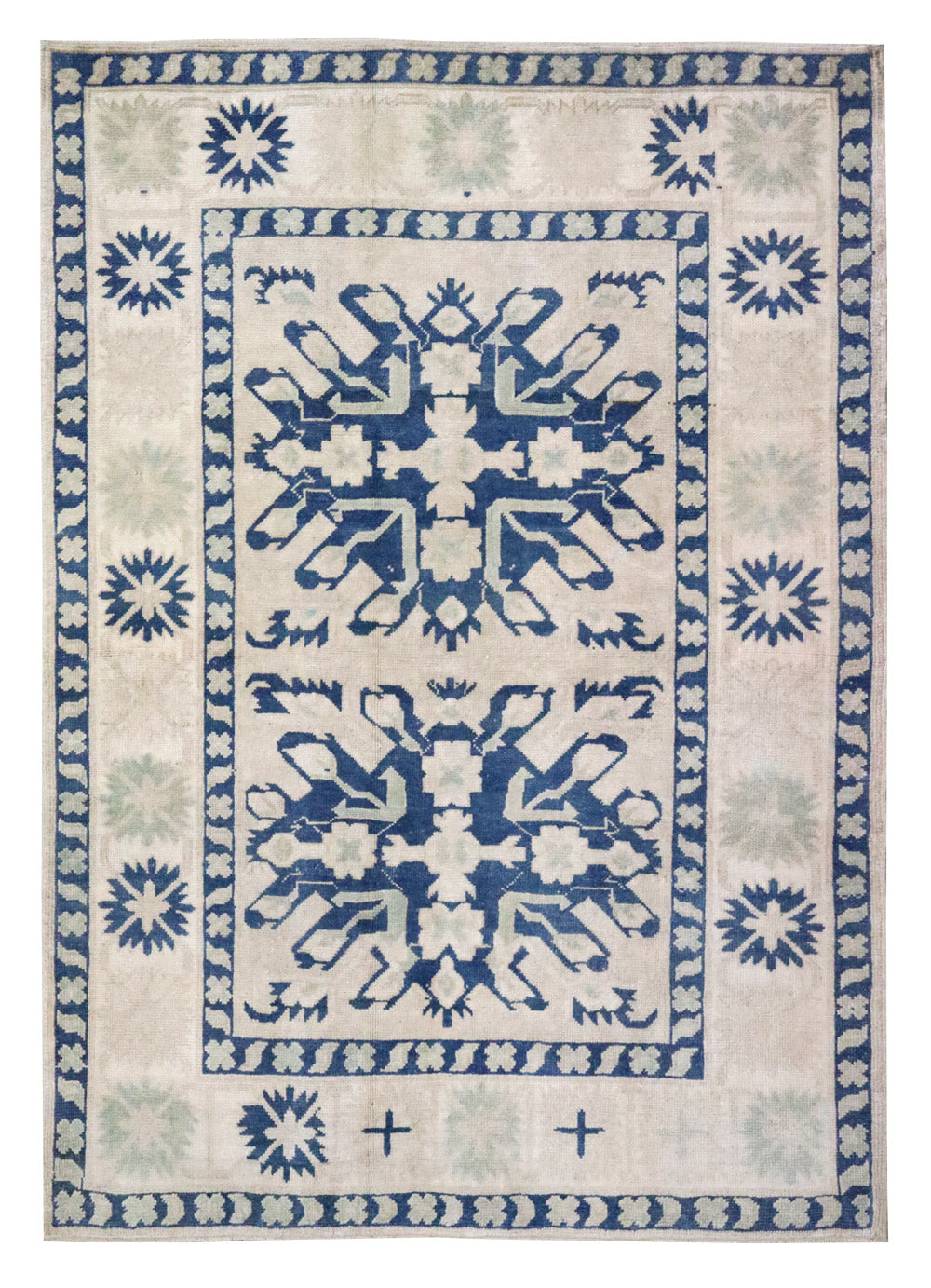 Change things up — transform your space with our amazing Vintage Konya Handwoven Tribal Rug (J66900). This vintage 4' 4" X 5' 10" rug is in the tribal Vintage Turkish Village style and features a stunning Konya design that you’ll absolutely love. This rug is primarily beige with blue accents. You’ll also appreciate the wool pile on a wool foundation, which feels great underfoot! As with other handwoven Turkish rugs dating to around 1950, this one’s made to last. You’ll be enjoying the elements of interest and sophistication it adds to your home for years. Don’t delay — refresh your room today with your own Vintage Konya Handwoven Tribal Rug.