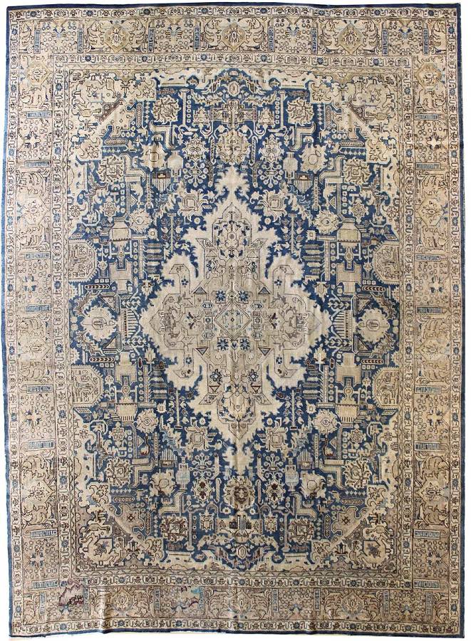 Elevate your room’s style with our Antique Medallion Handwoven Tribal Rug (JF5194). The tribal Nomadic Persian & Turkish style, with its Medallion motif, is definitely a stunner that you’ll be proud to show off in your home. Its distinctive blue and beige palette will add charm, elegance, and that little bit of that ever-elusive je ne sais quoi. Plus, the wool pile on a cotton foundation used in this 11' 11" X 14' 8" rug accentuates its allure. But, this rug isn’t just worthy of gracing the pages of a design magazine. With its masterful Persian handwoven construction, this antique rug from around 1925 will be a prized possession for decades to come. Get your own show-stopping Antique Medallion Handwoven Tribal Rug today!