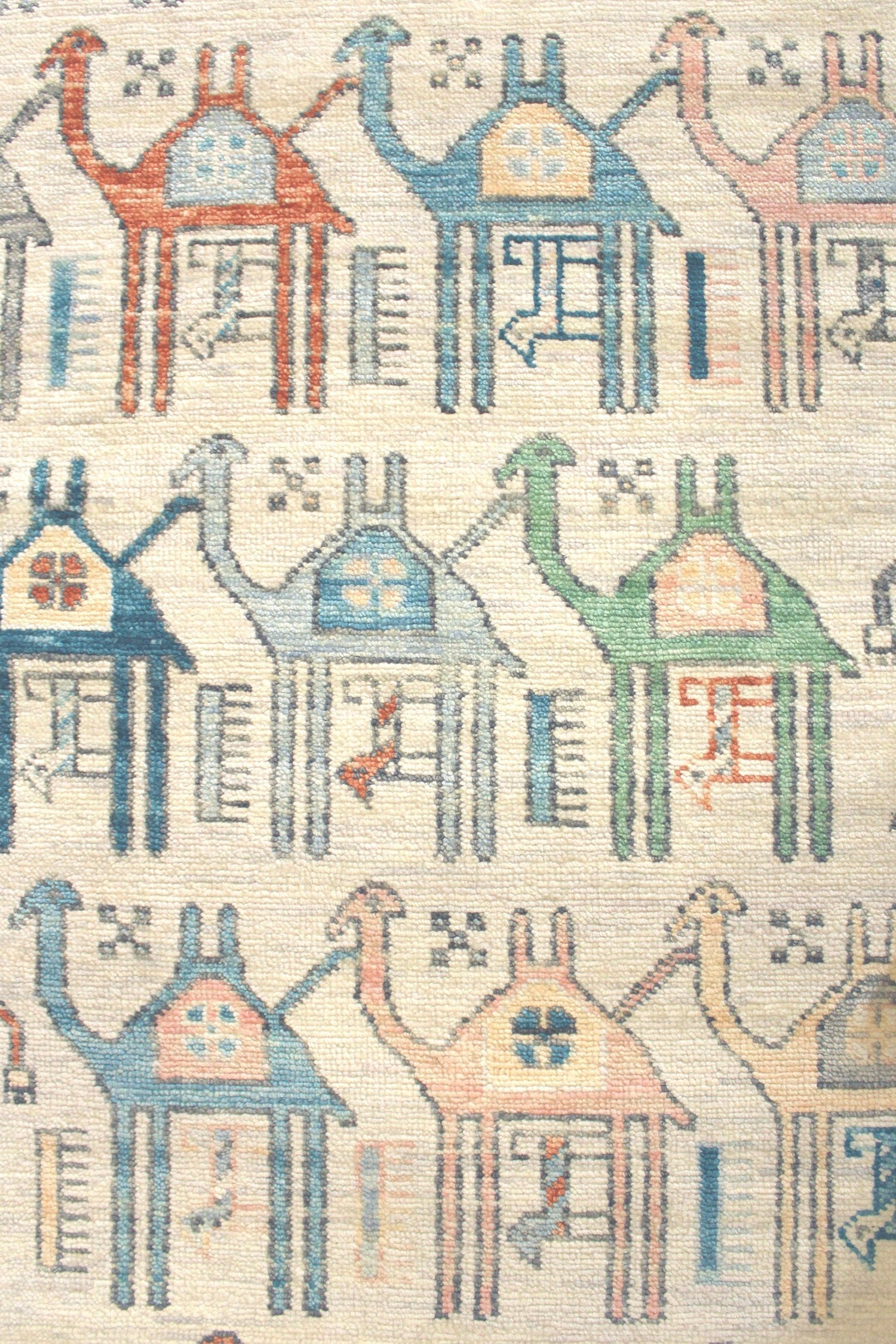 Crafted with intricate precision, the Soft Melody rug boasts a 6x6 quality, reflecting the expertise and artistry involved in its creation. Its 100% wool pile is supported by cotton foundations, tightly spun cotton warps, and mostly double-wefted construction, with a pile height of approximately 3/8 inch. The handspun nature of the yarn introduces subtle color variations, enriching each rug with a unique aesthetic achieved through artisanal dyeing techniques.