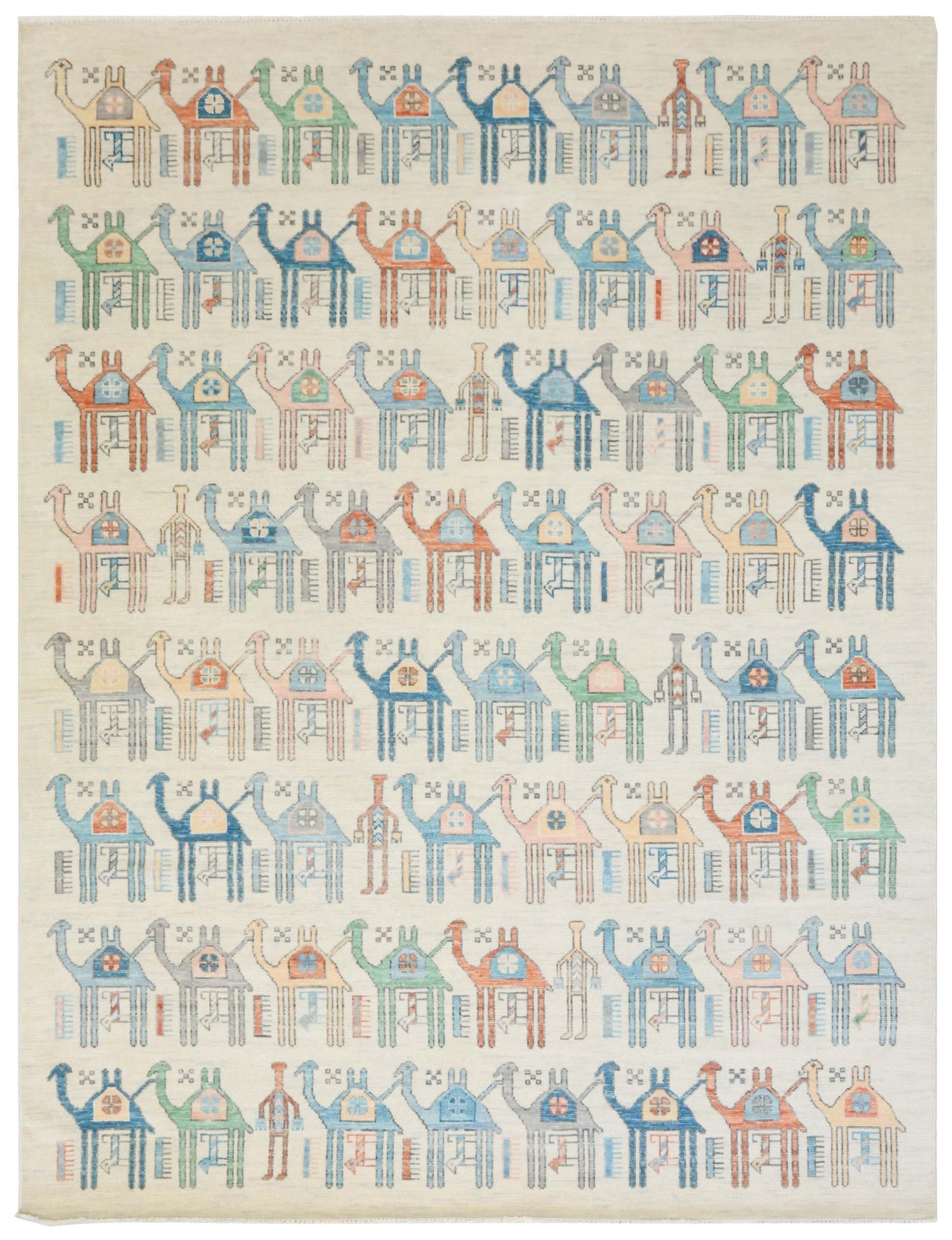New Pictorial Contemporary Indian Camels 9' 4" X 12' 2" Ivory Rug