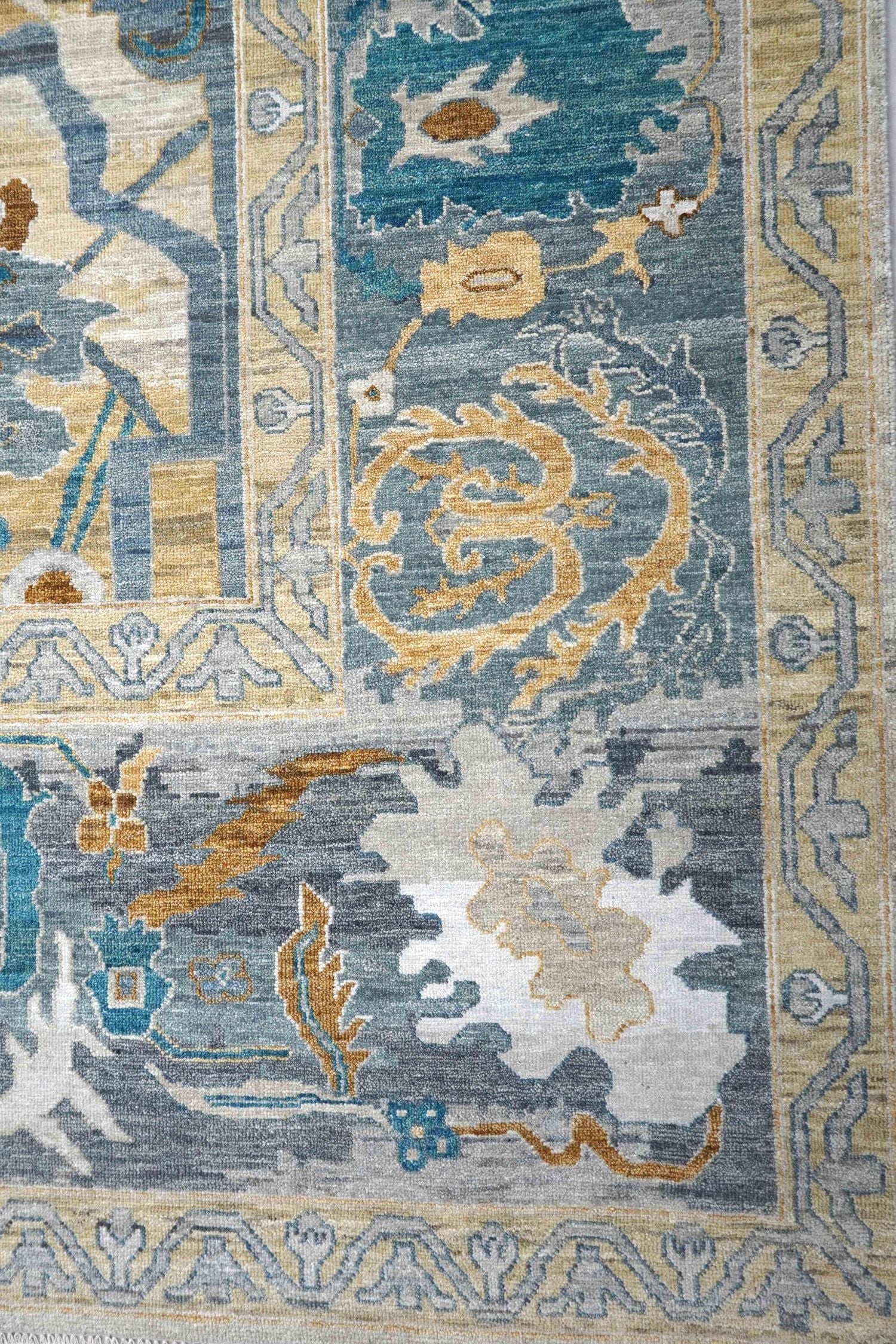 New Nomadic Persian & Turkish Tribal Indian Arabesque Bijar 9' 1" X 11' 11" Grey Rug