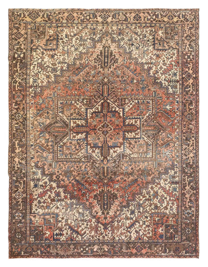 Vintage 1940 Nomadic Persian & Turkish Tribal Persian Heriz 8' 8" X 10' 9" Red Rug