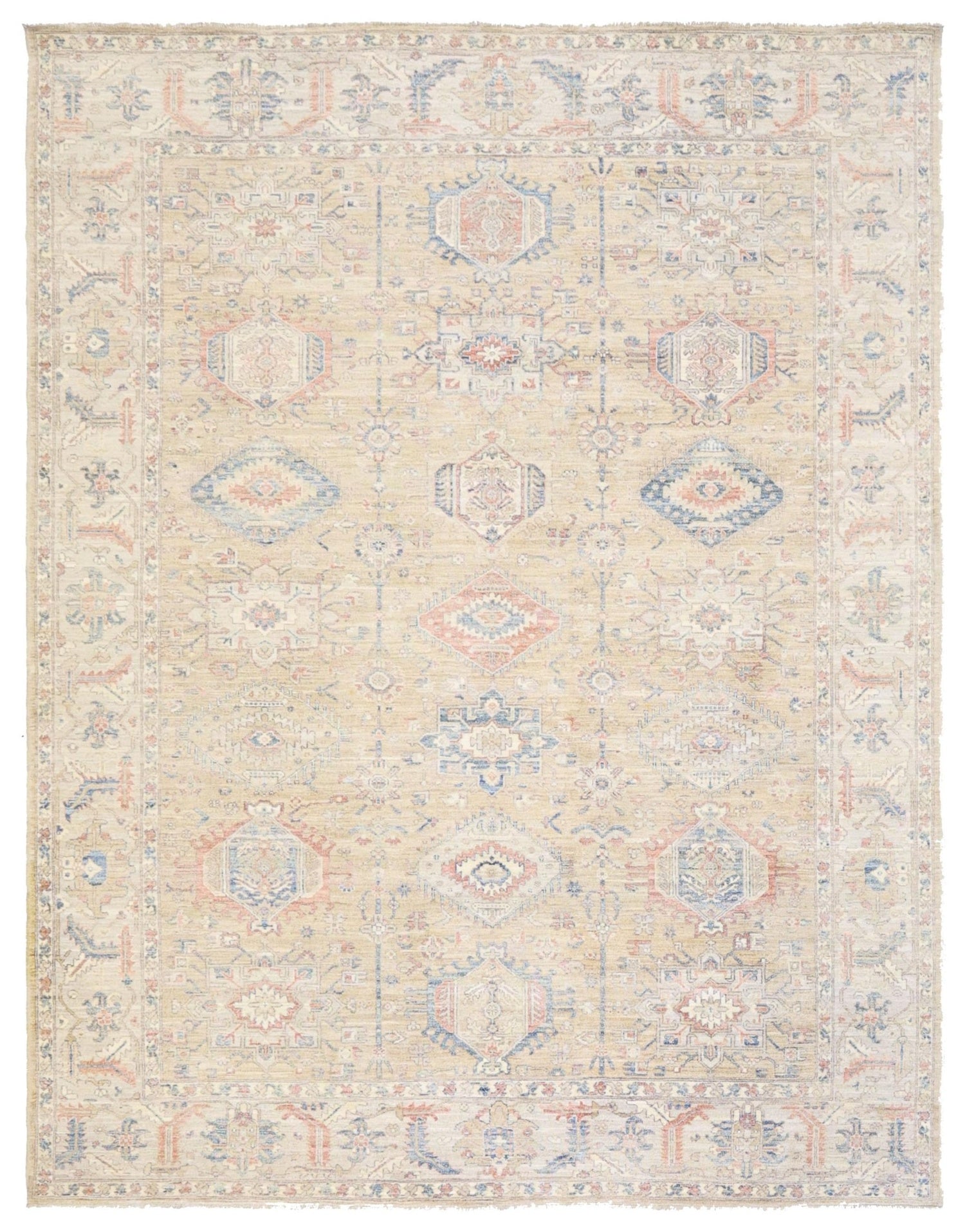 New Nomadic Persian & Turkish Tribal Afghani Karaja 9' 2" X 11' 10" Beige Rug