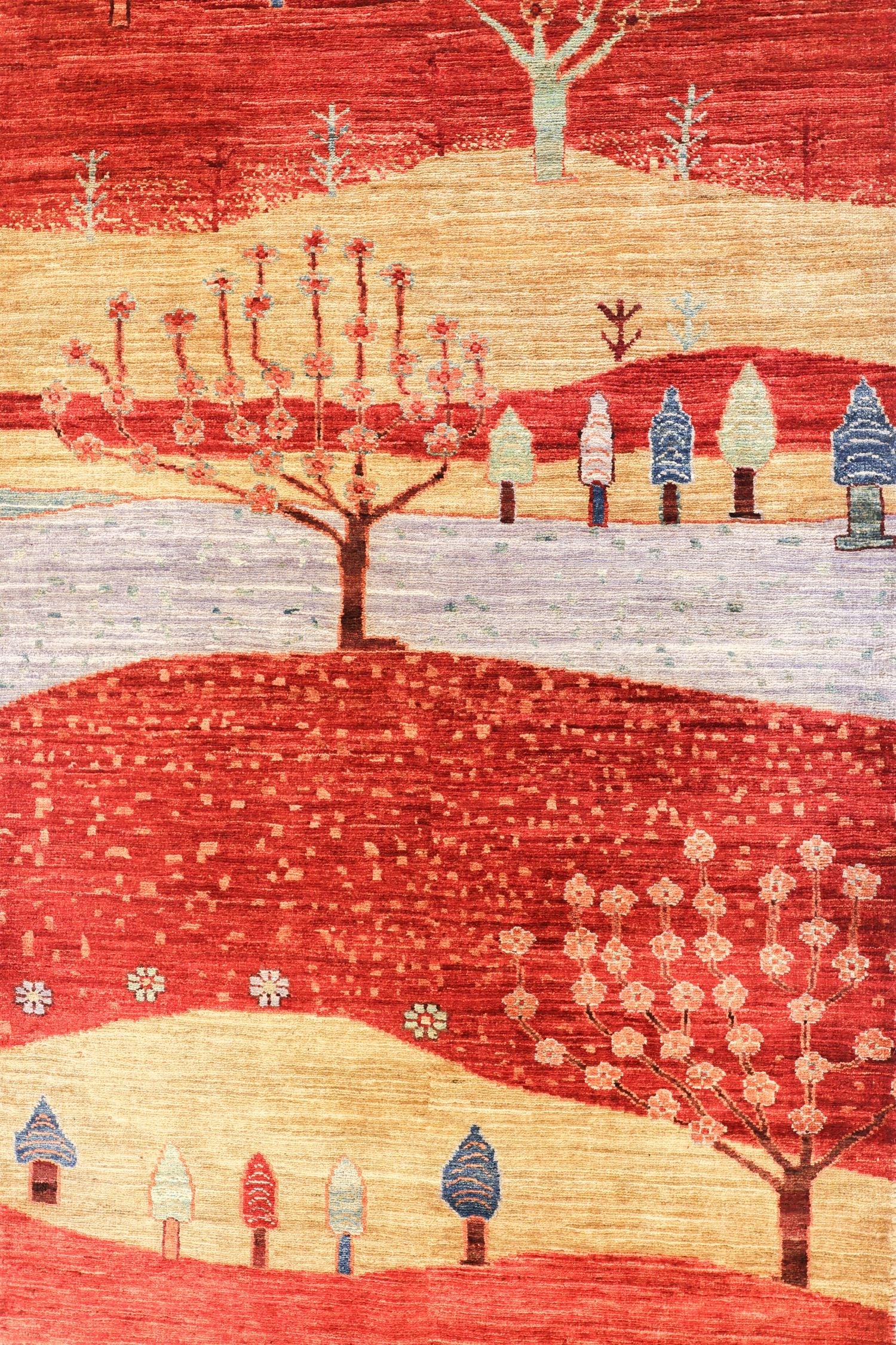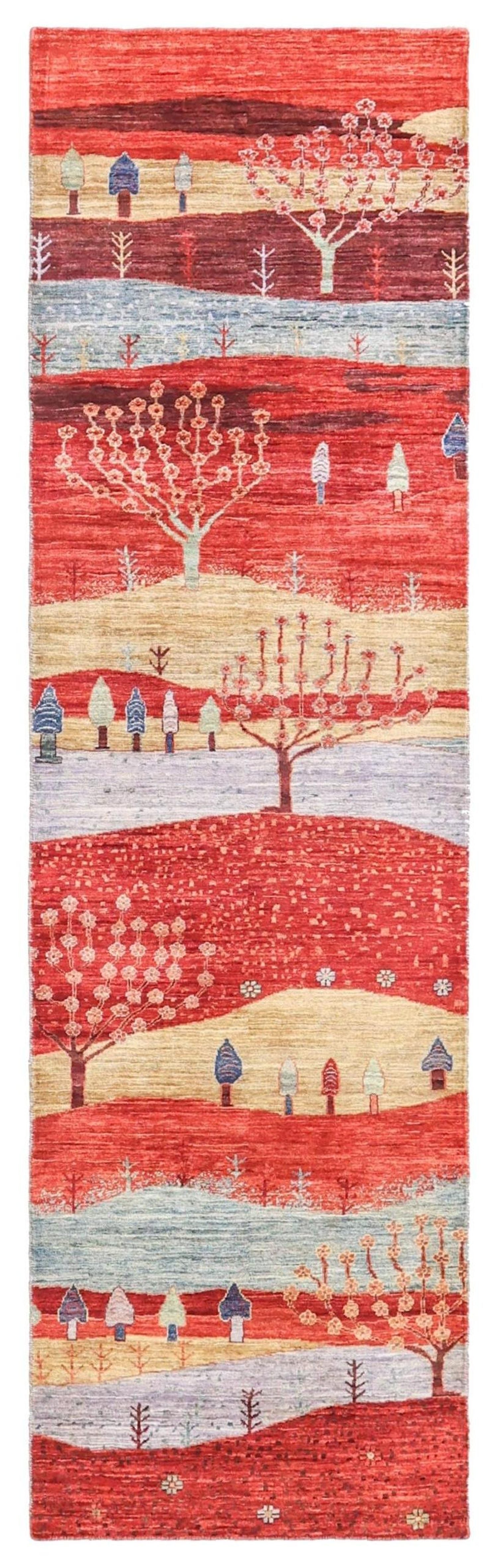 New Gabbeh Tribal Afghani Landscape 2' 10" X 9' 9" Red Rug