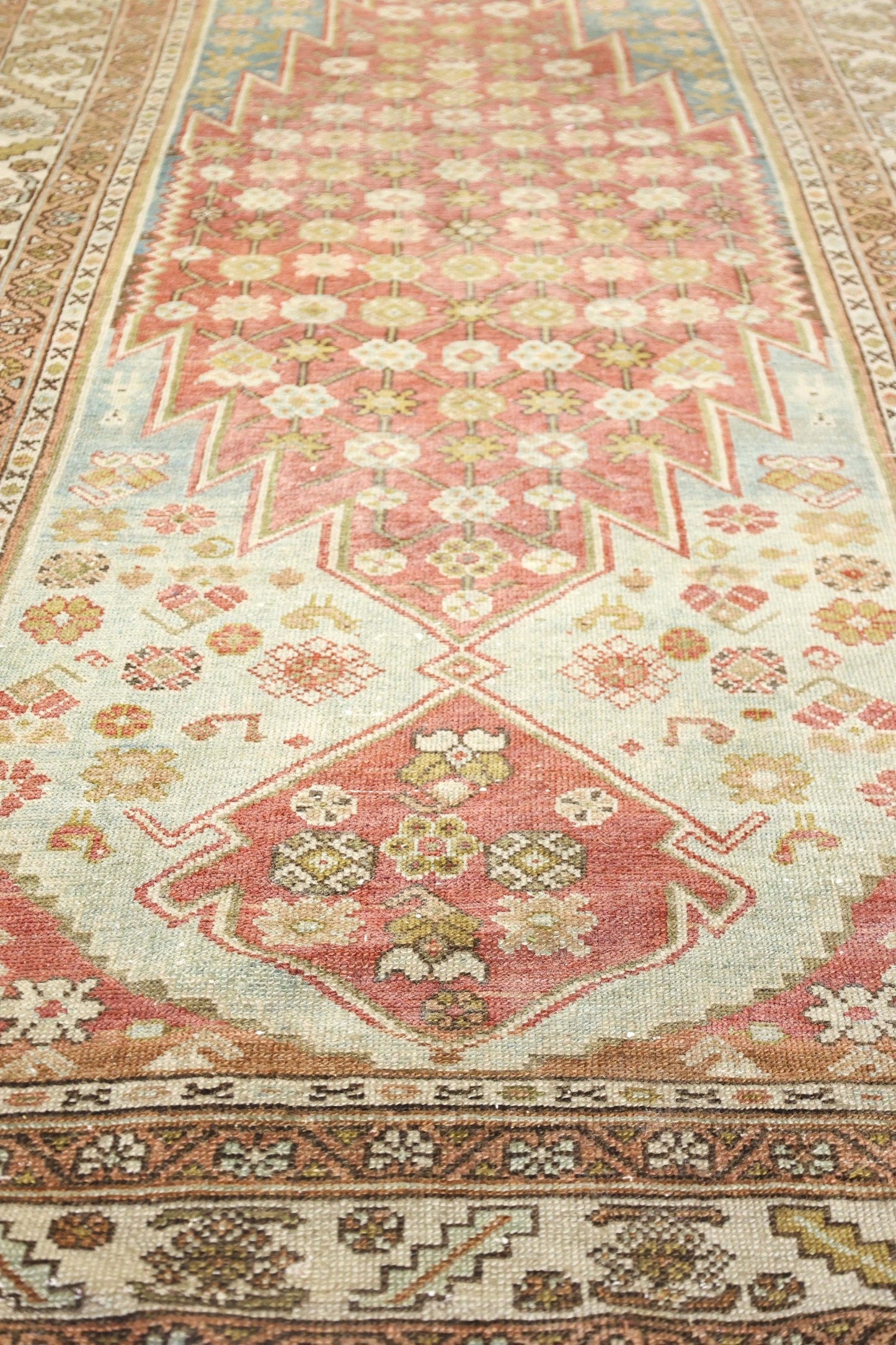 Vintage 1915 Nomadic Persian & Turkish Tribal Persian Mazlaghan 3' 10" X 19' 9" Red Rug
