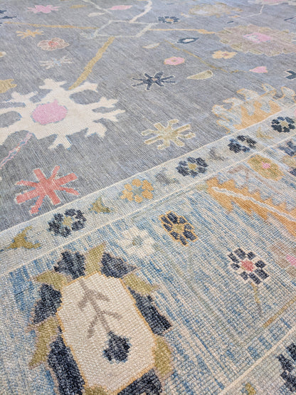 Opt for opulence and establish your signature style with the striking Oushak Handwoven Traditional Rug (j56275). As a 13' 4" X 17' 9" rug that's traditional and large scale floral in style, you know that this piece can instantly tie the look of your space together. The rug's oushak design will effortlessly complement and elevate your home's interior. Better still, the grey and blue will flatter any décor. This new handwoven Turkish rug is constructed of wool pile and a woolfoundation, so it’ll not only look outstanding and perfect in your home — it’ll last for generations. Bring home your Oushak Handwoven Traditional Rug today!