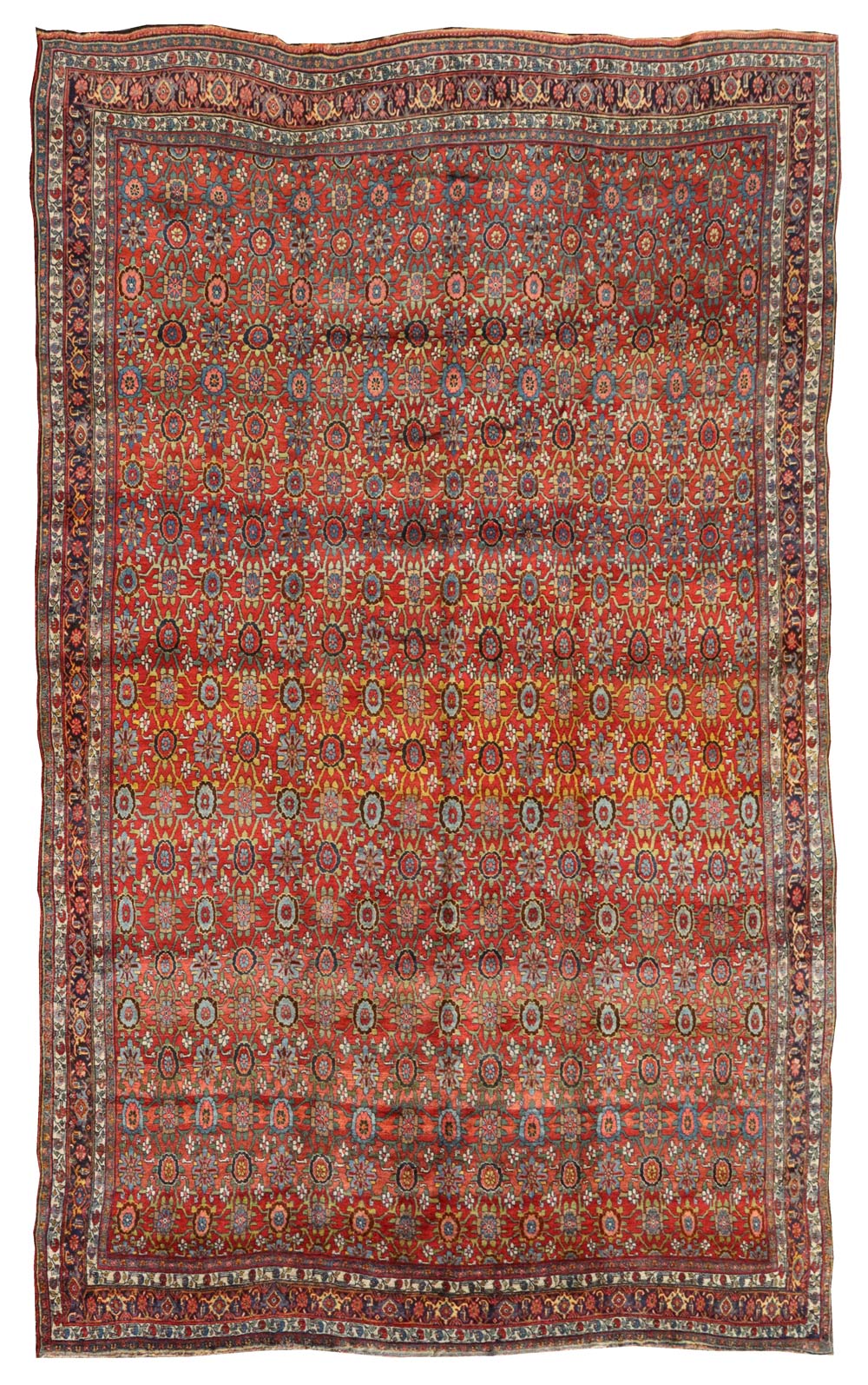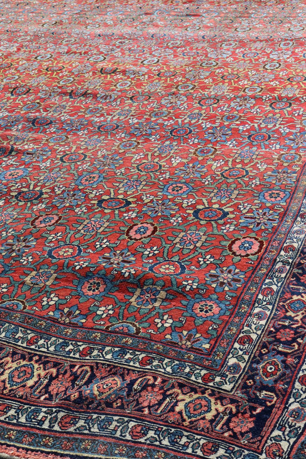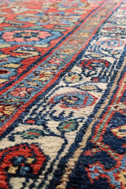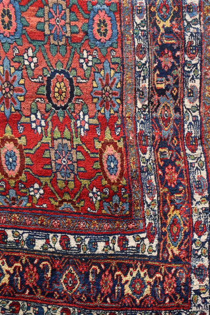 This Bijar rug is constructed with double-wefting, a characteristic technique that enhances its strength and resilience. The dense, double-layered weave contributes to the rug's texture and overall durability. Such technical quality is characteristic of Bijar carpets, making them highly esteemed for their robust construction.