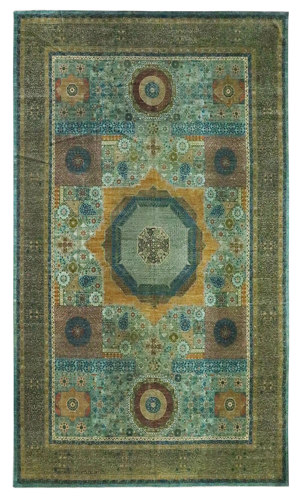 The Mamluk design has a fascinating history, with its origins in Cairo, Egypt. These carpets were produced from the late fifteenth century to the middle of the sixteenth century and continued to be made even after the Ottoman conquest of Egypt in 1517. Mamluk carpets were used both domestically and imported, adorning religious and residential structures. During processions, they were also used to line the streets, adding to their significance and value.