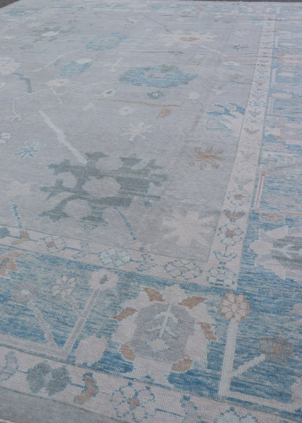Make your house truly feel like home with our Oushak Handwoven Traditional Rug (J68532). It's new and traditional. It’s grey on silver with blue accent colors. It’s a Large Scale Floral style rug with a Oushak motif. All things you gravitate towards when it comes to aesthetics and design in your space. Being a 15' 9" X 19' 9" rug of wool pile on a wool foundation, you can rest assured that this piece will do more than just make the visual impact and create the vibe you want. It comes from the fine Turkish tradition of handwoven rugmaking, meaning this rug will serve you well and look terrific for years. Add that extra special personal touch today with your own Oushak Handwoven Traditional Rug.