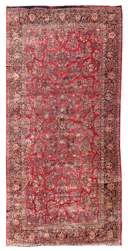 Overall, this circa 1930 Sarouk rug is a testament to the enduring beauty and intricate craftsmanship of traditional Persian rug-making. The combination of its rich colors, detailed patterns, and high-quality materials makes it a distinguished example of Persian weaving artistry.