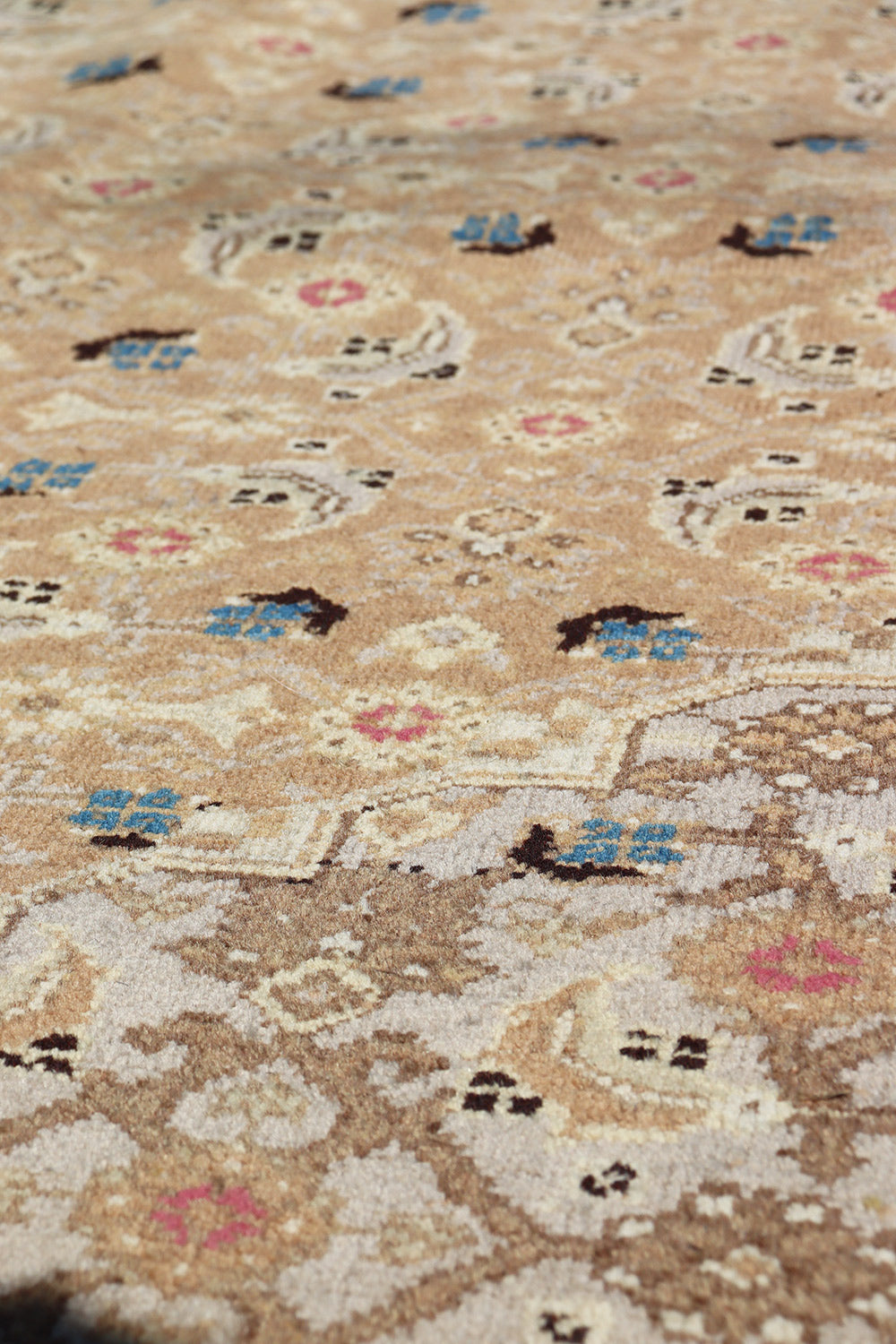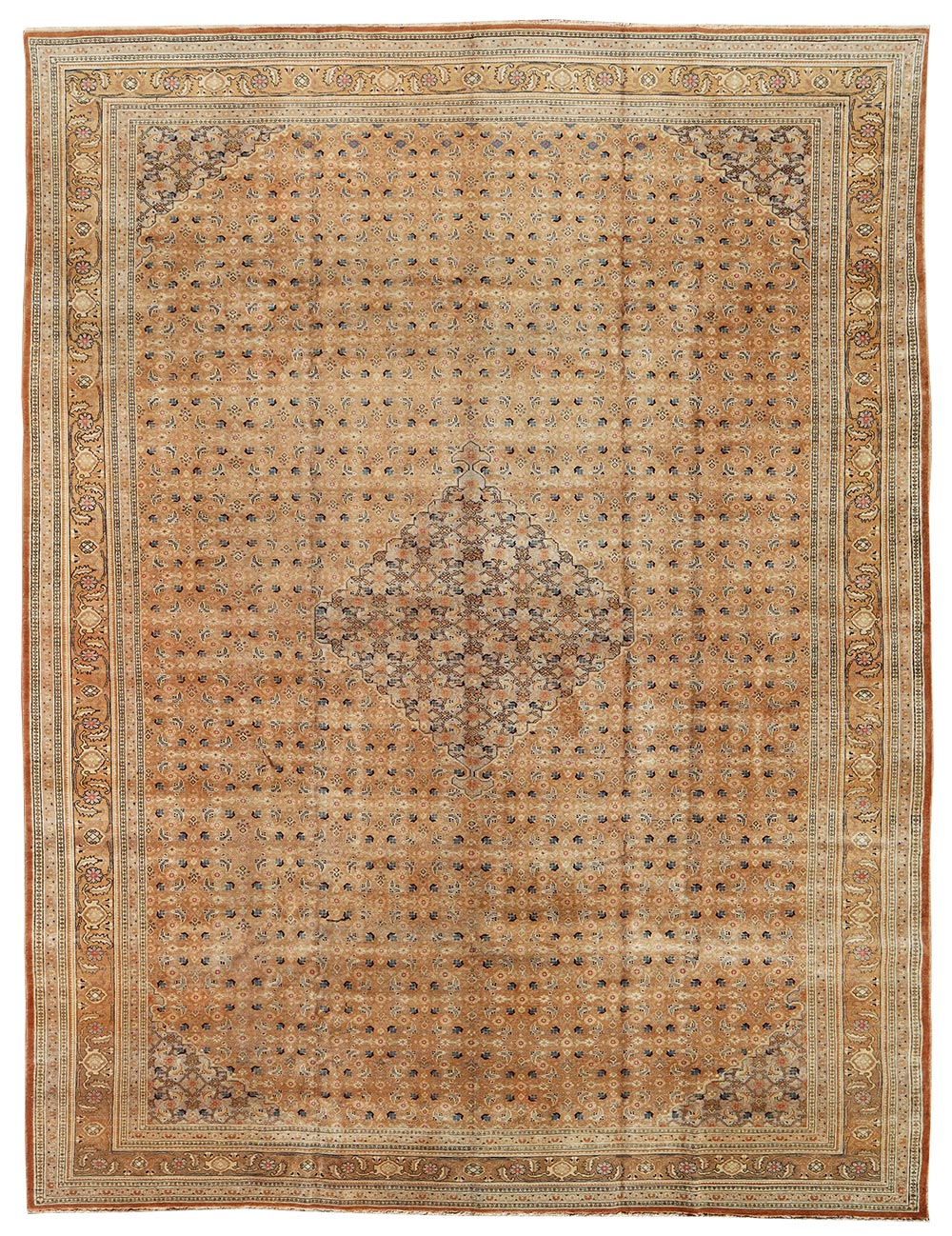 Elevate your room’s style with our Antique Tabriz Handwoven Traditional Rug (JF8587). The traditional Formal Classic Persian style, with its Tabriz motif, is definitely a stunner that you’ll be proud to show off in your home. Its distinctive orange, peach and blue palette will add charm, elegance, and that little bit of that ever-elusive je ne sais quoi. Plus, the wool pile on a cotton foundation used in this 13' 6" X 18' 0" rug accentuates its allure. But, this rug isn’t just worthy of gracing the pages of a design magazine. With its masterful Persian handwoven construction, this antique rug from around 1940 will be a prized possession for decades to come. Get your own show-stopping Antique Tabriz Handwoven Traditional Rug today!