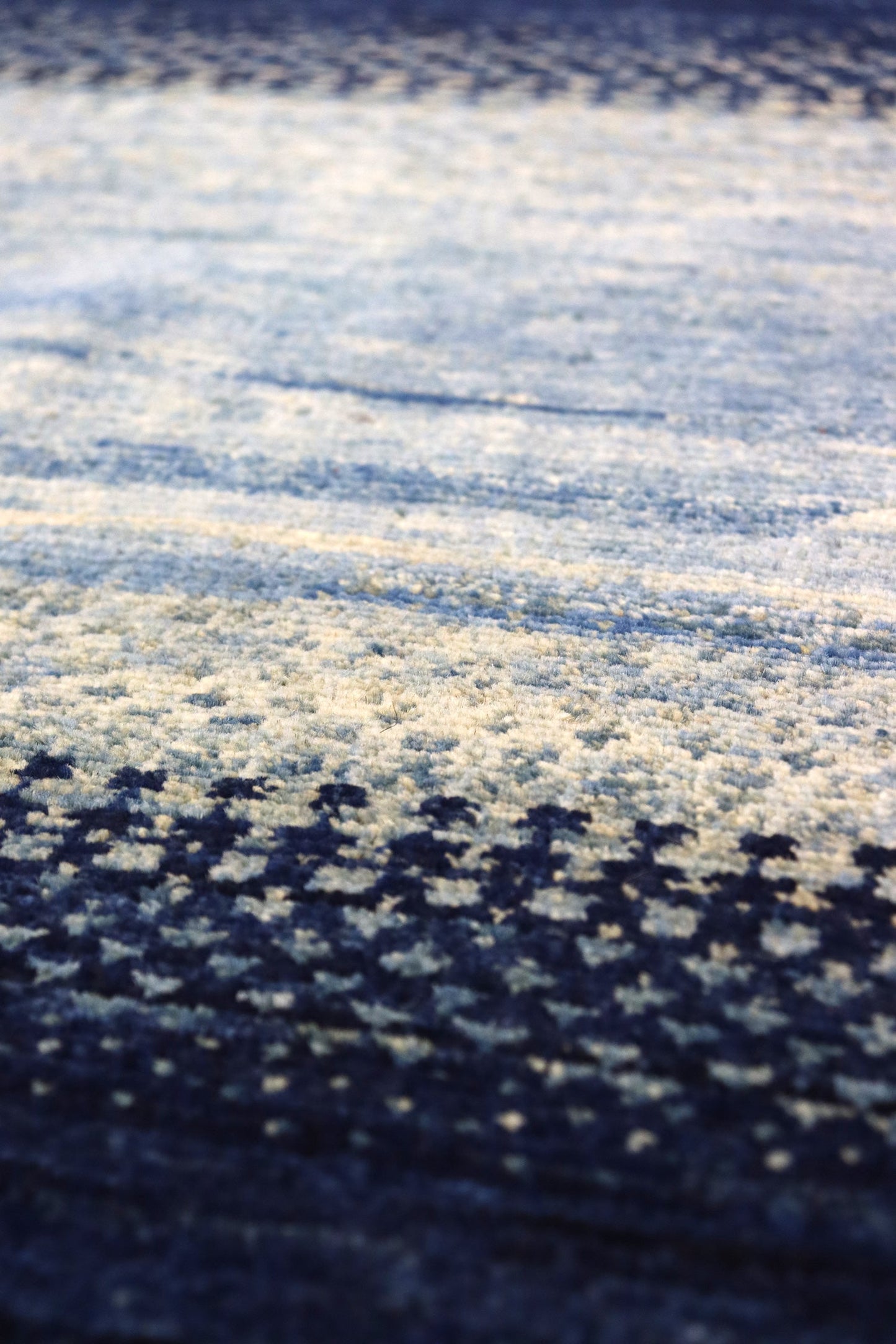 The captivating blue color of this rug is derived from natural indigo dye stuffs. Dating back thousands of years, indigo is one of the oldest known dyes used by humans. Our rug's blue hues have been expertly achieved through the use of natural indigo dyes, also known as indigofera tinctoria or true indigo.