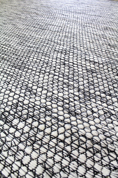 One of the fastest and easiest ways to breathe new life into your home’s décor is to add a stunning floor covering, like our Indian Honeycomb Handwoven Contemporary Rug (J59714). This contemporary Modern Flatweave piece is ivory with black accents. This new handwoven rug features a Honeycomb design motif, crafted in durable wool flatweave on a cotton foundation. Plus, its size — 8' 0" X 10' 0" — will provide ample coverage. This means years of comfort, style, and enjoyment for you and your loved ones. Take the next step and get your Honeycomb Handwoven Contemporary Rug right now.