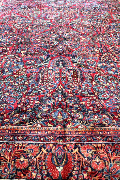 Antique 1925 Formal Classic Persian Traditional Persian Sarouk 10' 0" X 19' 4" Red Rug