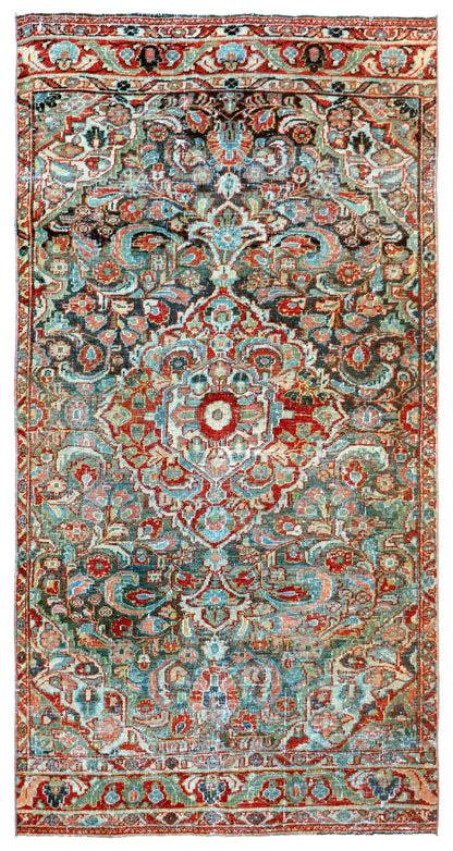 Vintage 1920 Formal Classic Persian Traditional Persian Sarouk 3' 4" X 6' 4" Green Rug