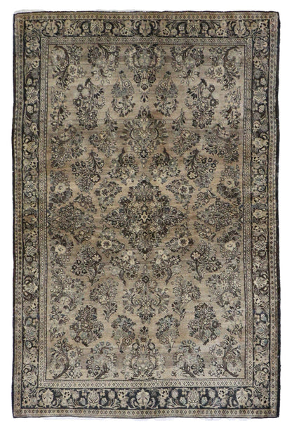 Elevate your room’s style with our Antique Sarouk Handwoven Traditional Rug (JF8654). The traditional Formal Classic Persian style, with its Sarouk motif, is definitely a stunner that you’ll be proud to show off in your home. Its distinctive brown, sand and silver palette will add charm, elegance, and that little bit of that ever-elusive je ne sais quoi. Plus, the wool pile on a cotton foundation used in this 4' 1" X 6' 5" rug accentuates its allure. But, this rug isn’t just worthy of gracing the pages of a design magazine. With its masterful Persian handwoven construction, this antique rug from around 1935 will be a prized possession for decades to come. Get your own show-stopping Antique Sarouk Handwoven Traditional Rug today!