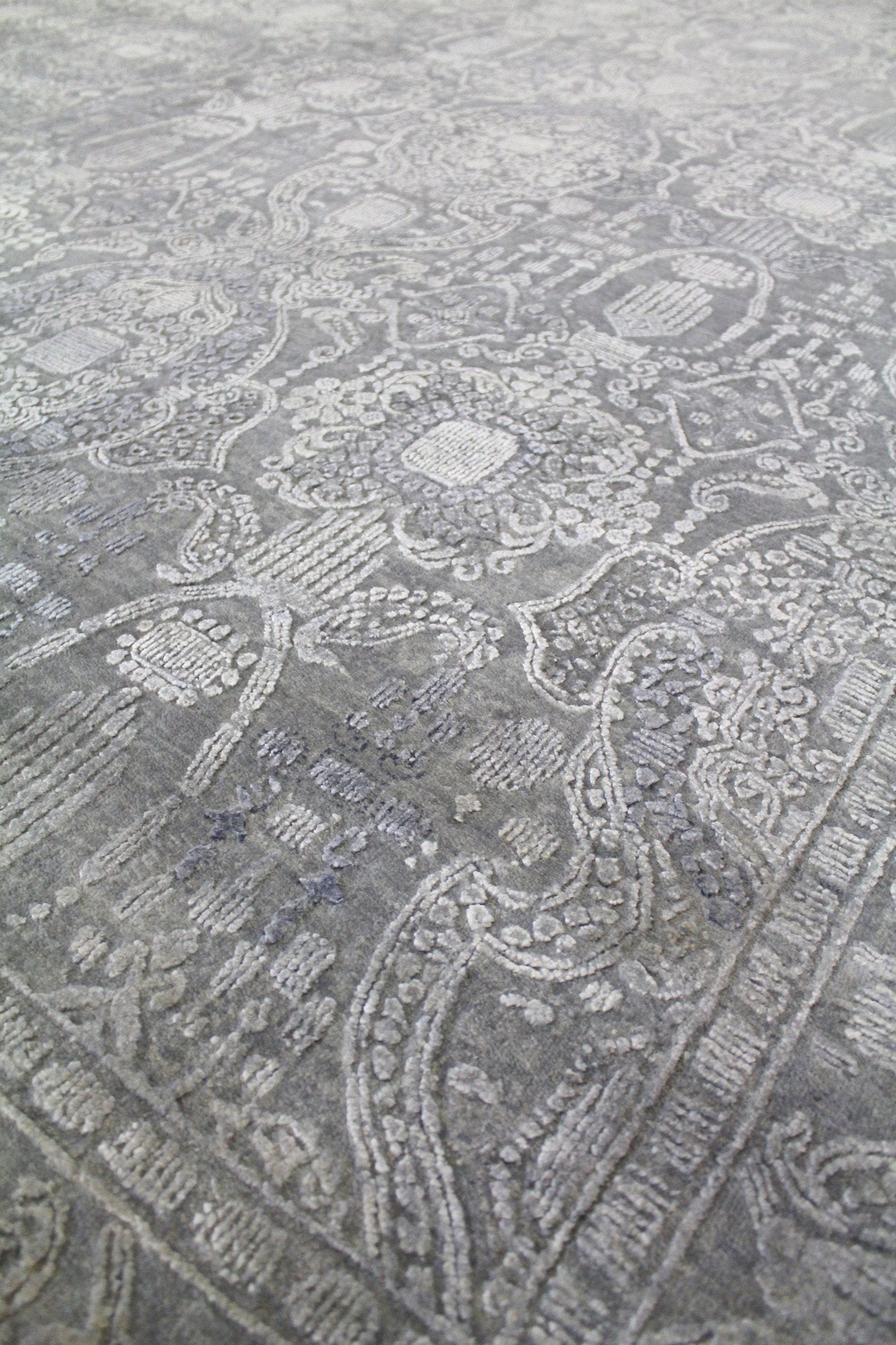 One of the fastest and easiest ways to breathe new life into your home’s décor is to add a stunning floor covering, like our Indian Fabric Pile Transitional Rug (J59864). This transitional New Classical piece is silver with grey accents. This new pile rug features a Fabric design motif, crafted in durable wool & silk pile on a cotton foundation. Plus, its size — 8' 1" X 10' 4" — will provide ample coverage. This means years of comfort, style, and enjoyment for you and your loved ones. Take the next step and get your Fabric Pile Transitional Rug right now.
