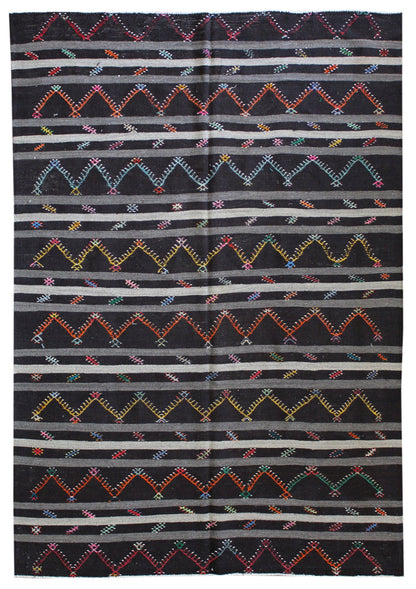 Vintage Kilim Tribal Turkish Kil Kilim 8' 0" X 11' 7" Brown Rug