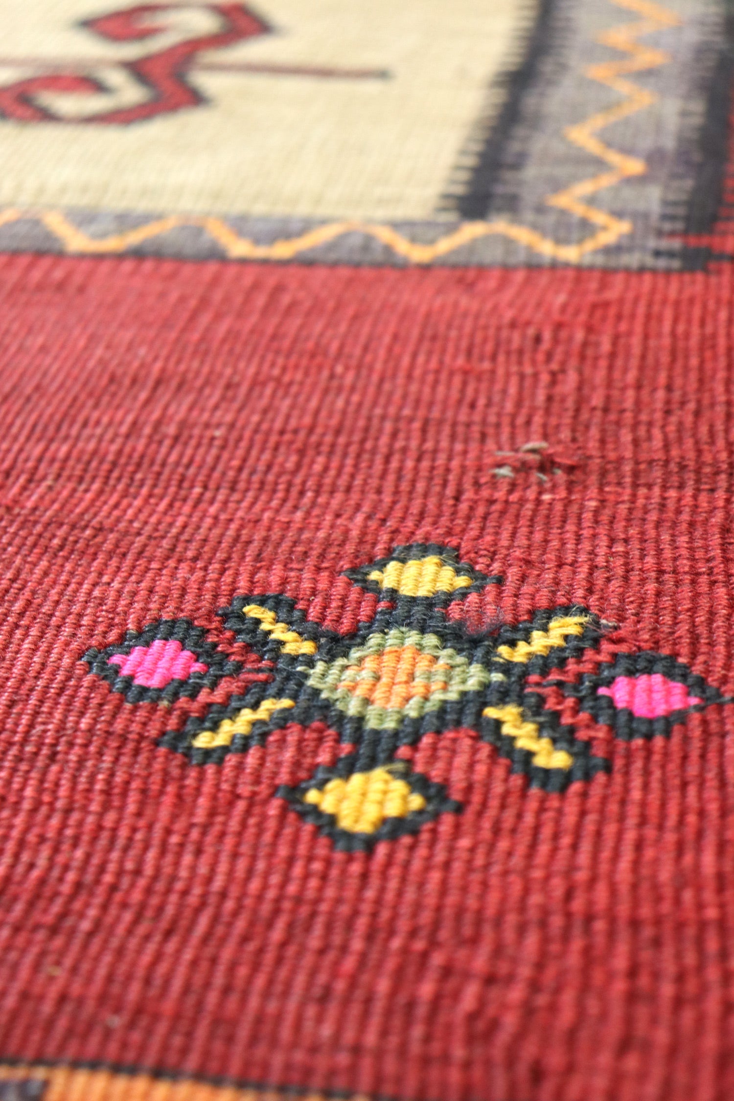 Make your house truly feel like home with our Vintage Meshkin Kilim Handwoven Tribal Rug (J67869). It's vintage (circa 1960) and tribal. It’s red on burgundy with green accent colors. It’s a Kilim style rug with a Meshkin Kilim motif. All things you gravitate towards when it comes to aesthetics and design in your space. Being a 4' 5" X 12' 2" rug of wool flatweave on a wool foundation, you can rest assured that this piece will do more than just make the visual impact and create the vibe you want. It comes from the fine Persian tradition of handwoven rugmaking, meaning this rug will serve you well and look terrific for years. Add that extra special personal touch today with your own Vintage Meshkin Kilim Handwoven Tribal Rug.