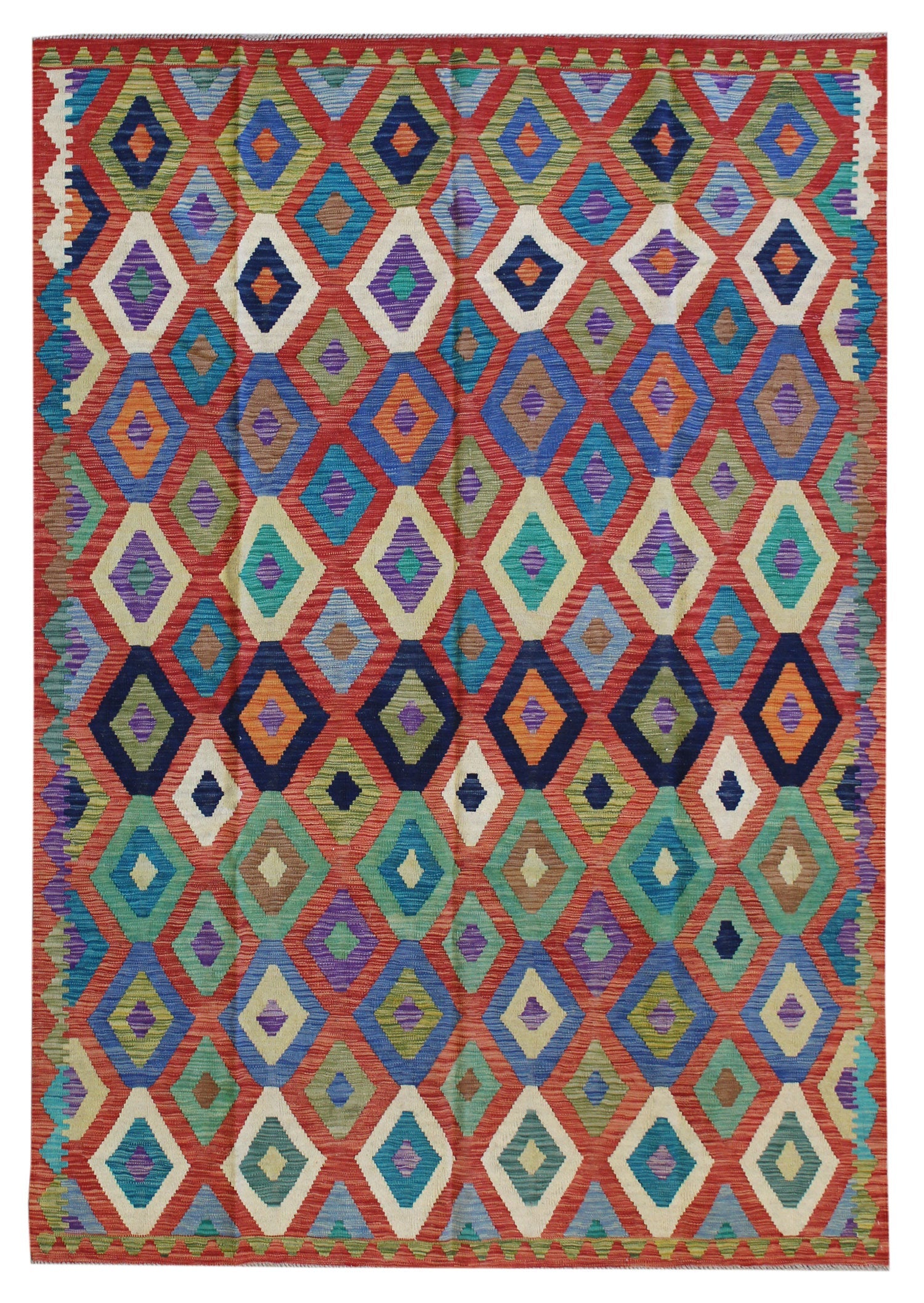 New Kilim Tribal Afghani Uzbek 6' 7" X 9' 8" Red Rug