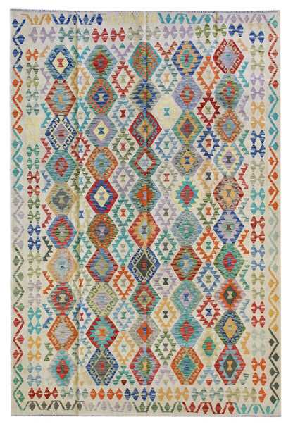 New Kilim Tribal Afghani Uzbek 6' 8" X 9' 7" Ivory Rug