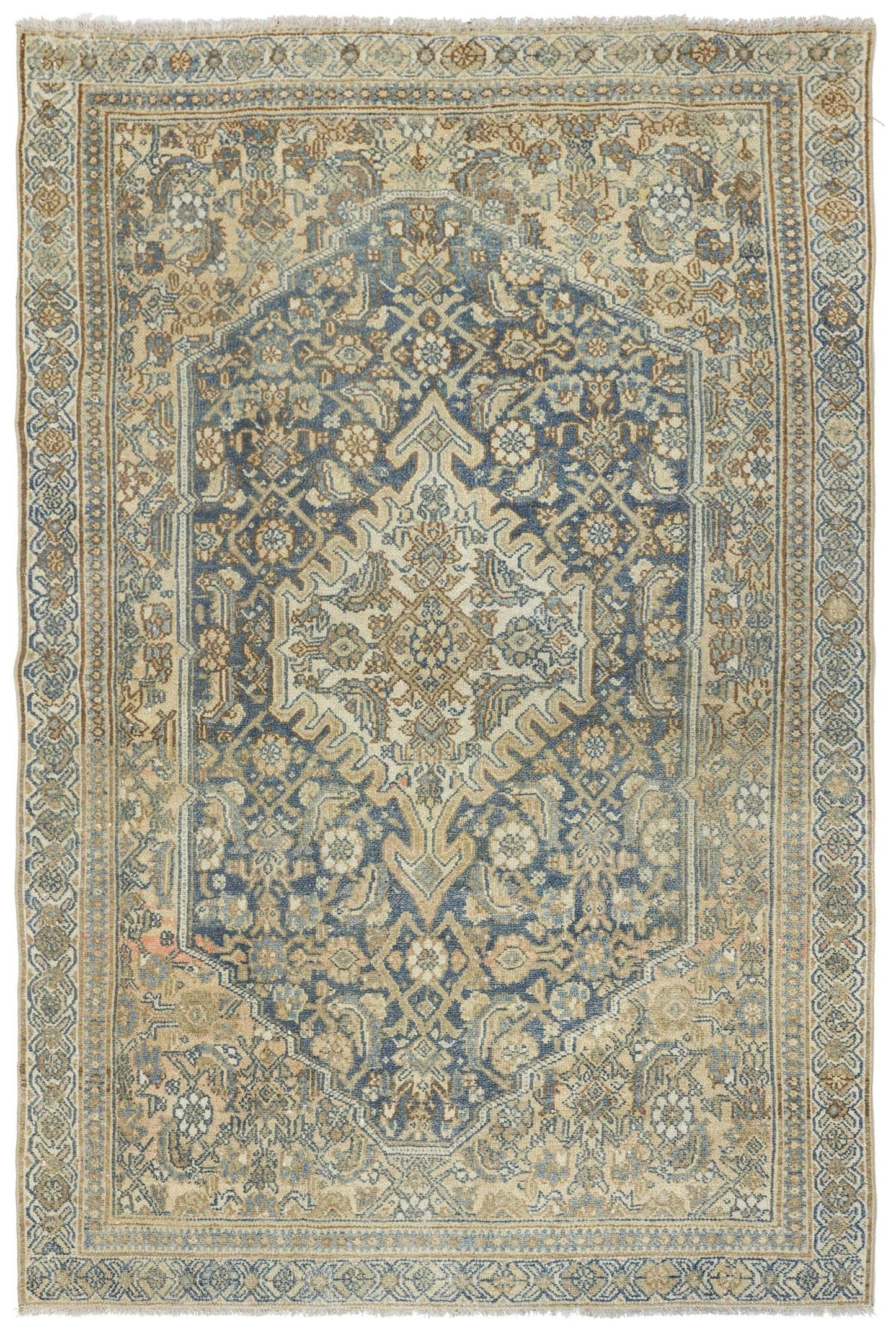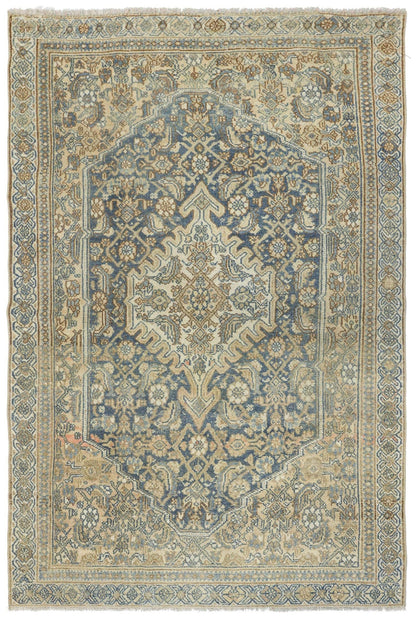 Vintage 1930 Nomadic Persian & Turkish Tribal Persian Bibikabad 3' 9" X 5' 9" Blue Rug