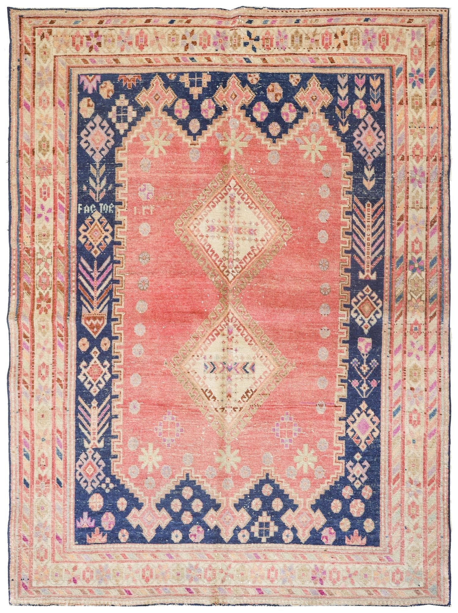 Vintage 1940 Nomadic Persian & Turkish Tribal Persian Afshar 4' 11" X 6' 7" Pink Rug