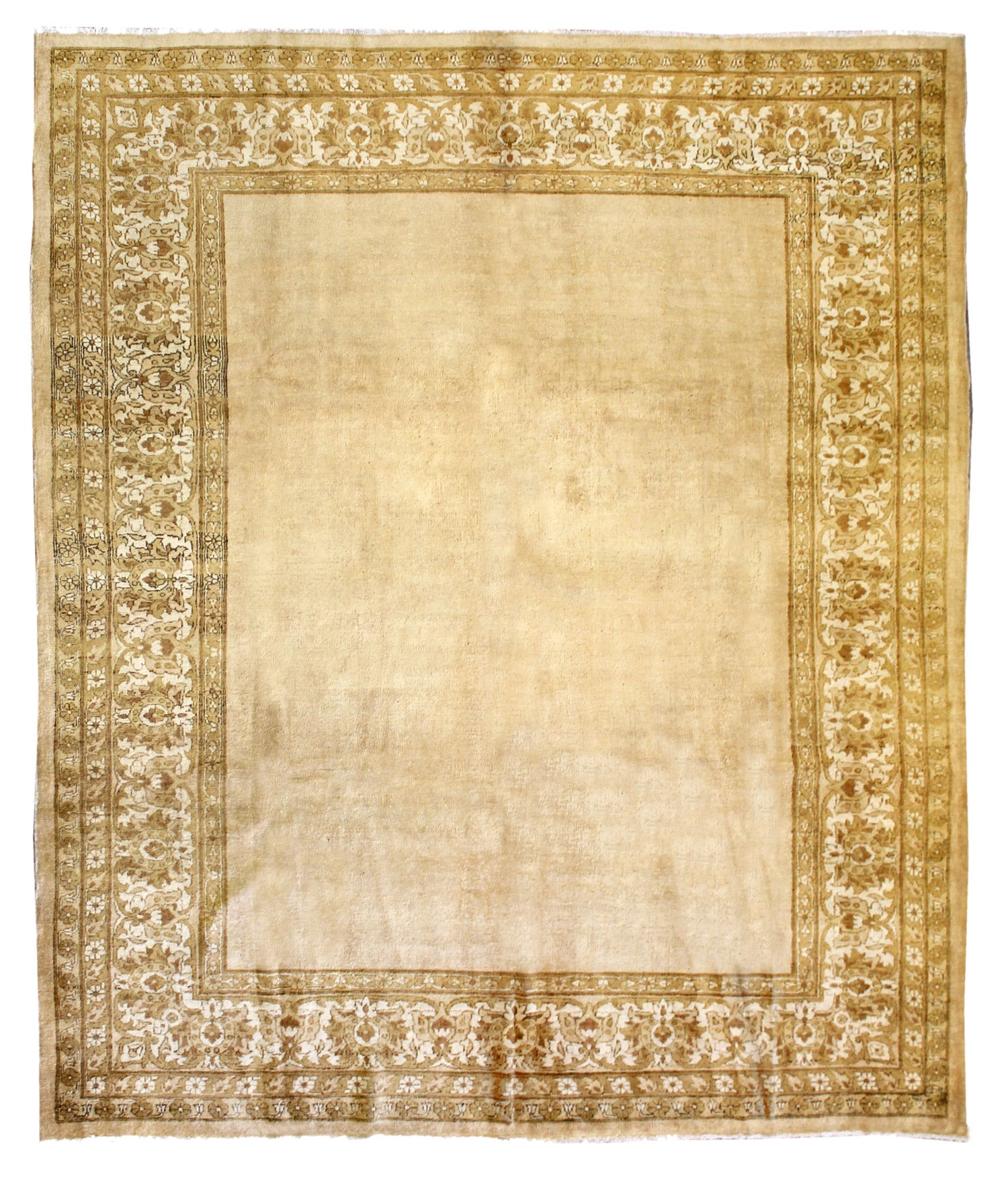 Elevate your room’s style with our Antique Agra Handwoven Traditional Rug (JF8252). The traditional Formal Classic Persian style, with its Agra motif, is definitely a stunner that you’ll be proud to show off in your home. Its distinctive yellow, light gold and gold palette will add charm, elegance, and that little bit of that ever-elusive je ne sais quoi. Plus, the wool pile on a cotton foundation used in this 8' 10" X 11' 3" rug accentuates its allure. But, this rug isn’t just worthy of gracing the pages of a design magazine. With its masterful Indian handwoven construction, this antique rug from around 1920 will be a prized possession for decades to come. Get your own show-stopping Antique Agra Handwoven Traditional Rug today!