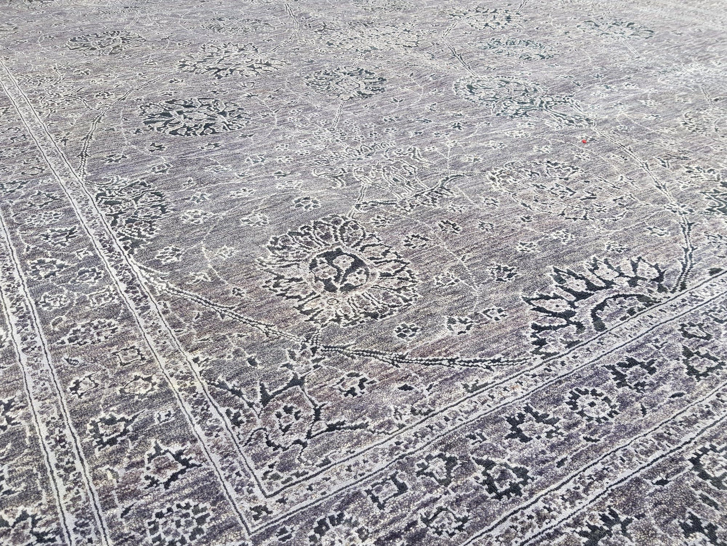 Show off your exquisite taste with our beautiful Agra Handwoven Transitional Rug (J64082). It’s a prime example of a transitional New Classical done right and will add a unique, polished look to your space. Crafted mainly in grey and complemented with graphite and charcoal, the Agra design really pops. The wool & silk pile surface is resilient yet comfortable and the cotton foundation provides a sturdy base. This 7' 11" X 9' 11" handwoven rug is of new construction and Afghanistan origin. All in all, you’re going to love this piece and it’s going to be the perfect addition to your home. Make it happen today — with your own Agra Handwoven Transitional Rug.