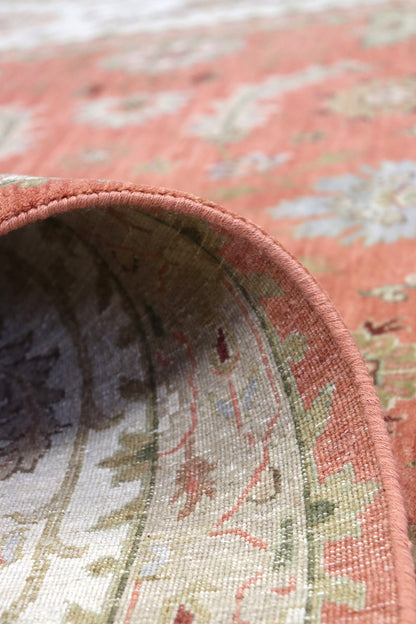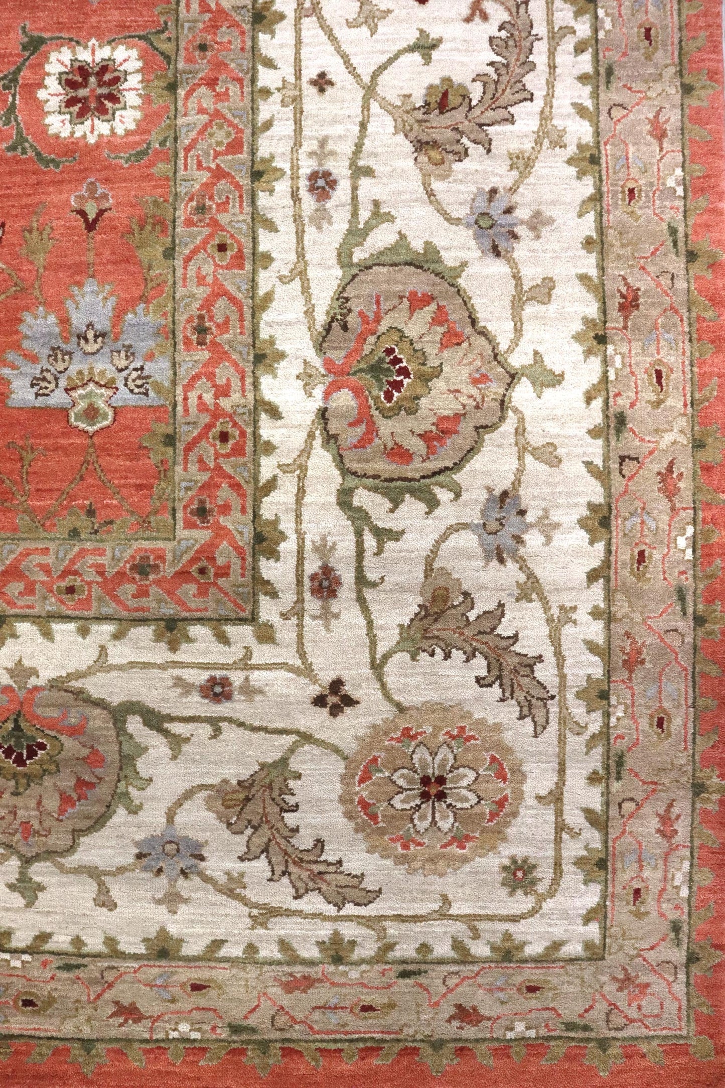 Change things up — transform your space with our amazing Agra Handwoven Transitional Rug (J65718). This new 8' 0" X 9' 10" rug is in the transitional New Classical style and features a stunning Agra design that you’ll absolutely love. This rug is primarily orange on paprika with platinum accents. You’ll also appreciate the wool pile on a cotton foundation, which feels great underfoot! As with other handwoven Indian rugs, this one’s made to last. You’ll be enjoying the elements of interest and sophistication it adds to your home for years. Don’t delay — refresh your room today with your own Agra Handwoven Transitional Rug.