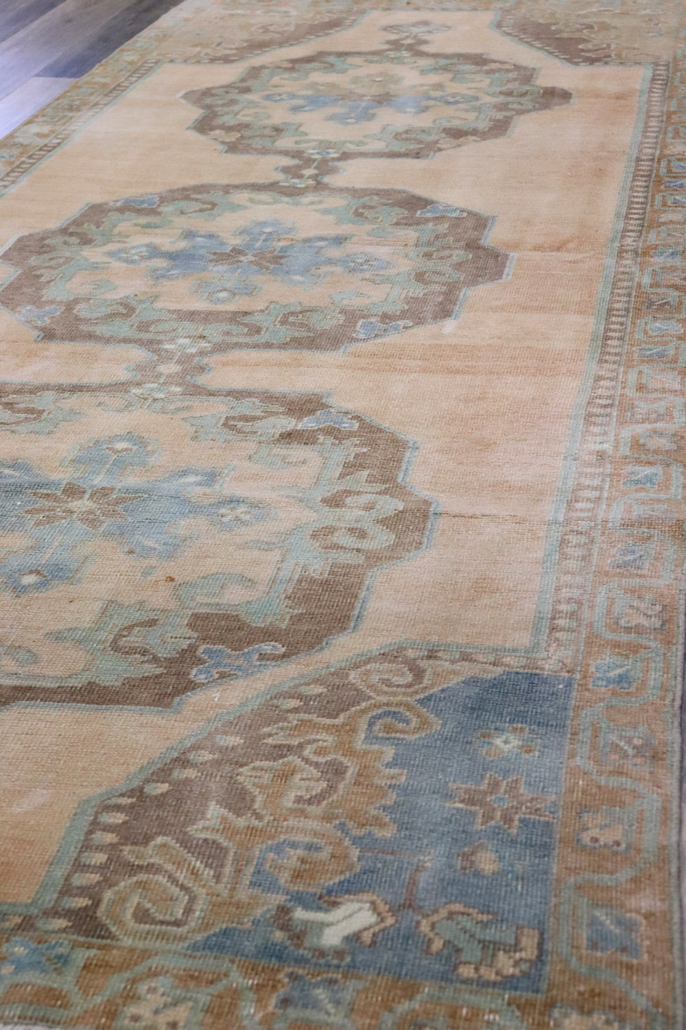Change things up — transform your space with our amazing Vintage Anadolu Handwoven Tribal Rug (J67256). This vintage 4' 7" X 12' 3" rug is in the tribal Vintage Turkish Village style and features a stunning Anadolu design that you’ll absolutely love. This rug is primarily orange on peach with seafoam accents. You’ll also appreciate the wool pile on a cotton foundation, which feels great underfoot! As with other handwoven Turkish rugs dating to around 1940, this one’s made to last. You’ll be enjoying the elements of interest and sophistication it adds to your home for years. Don’t delay — refresh your room today with your own Vintage Anadolu Handwoven Tribal Rug.