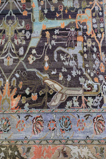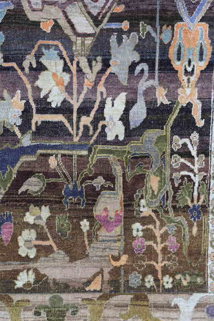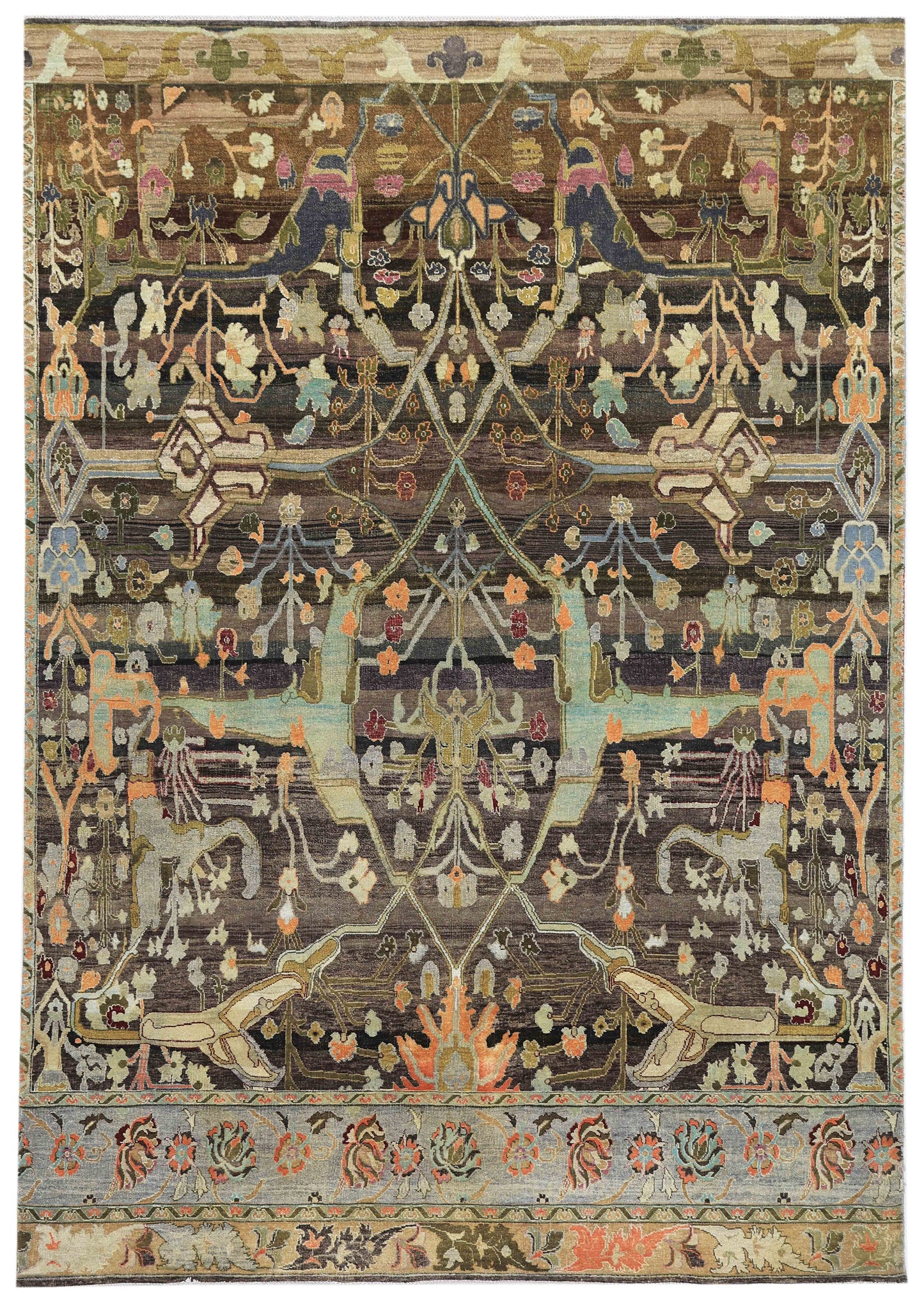 New Nomadic Persian & Turkish Tribal Indian Arabesque Bijar 6' 0" X 8' 11" Brown Rug