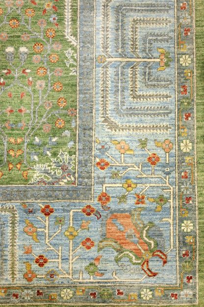 New Nomadic Persian & Turkish Tribal Afghani Arabesque 10' 1" X 14' 0" Green Rug